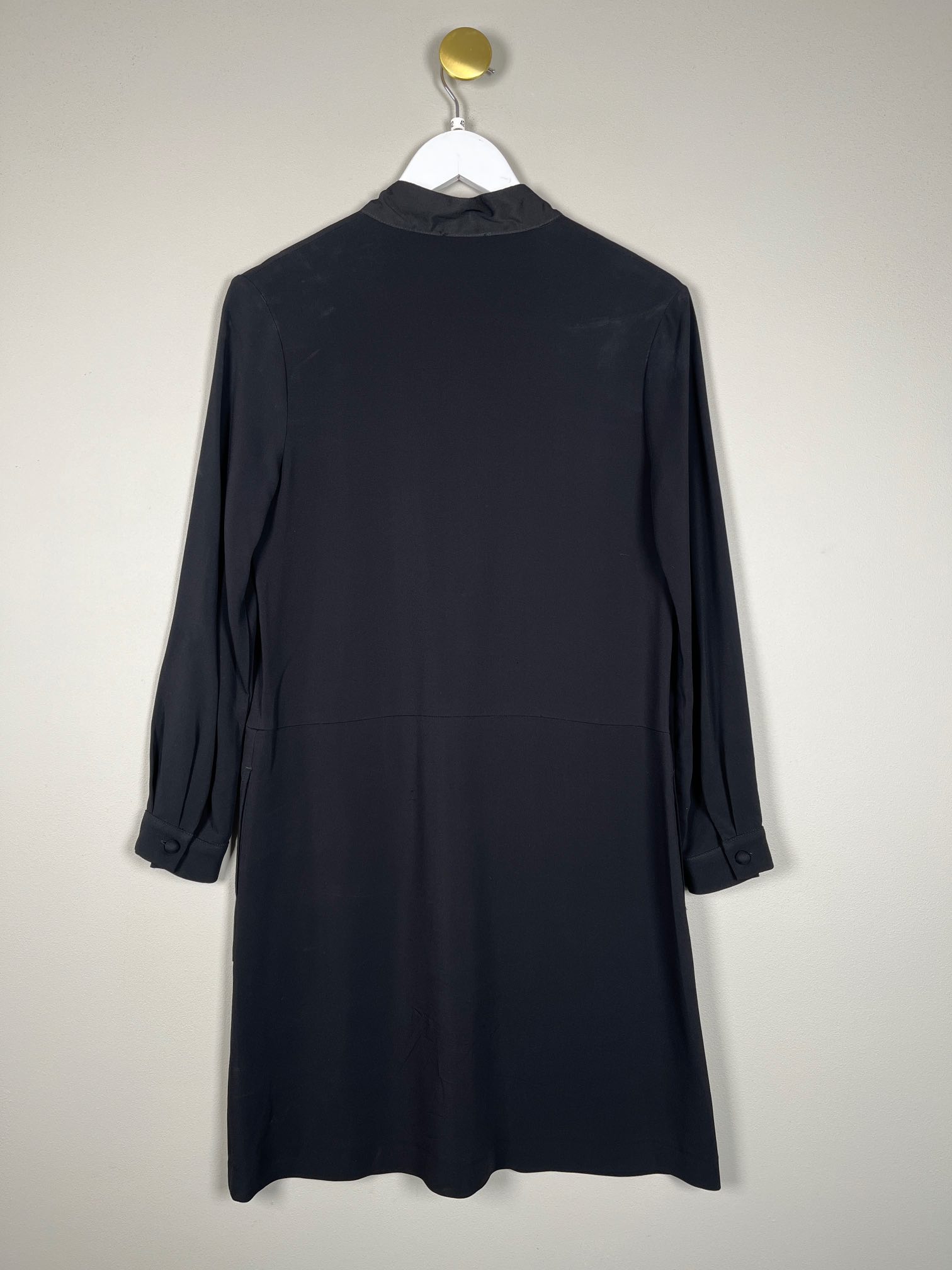 sort kjole med bindebånd ved kraven