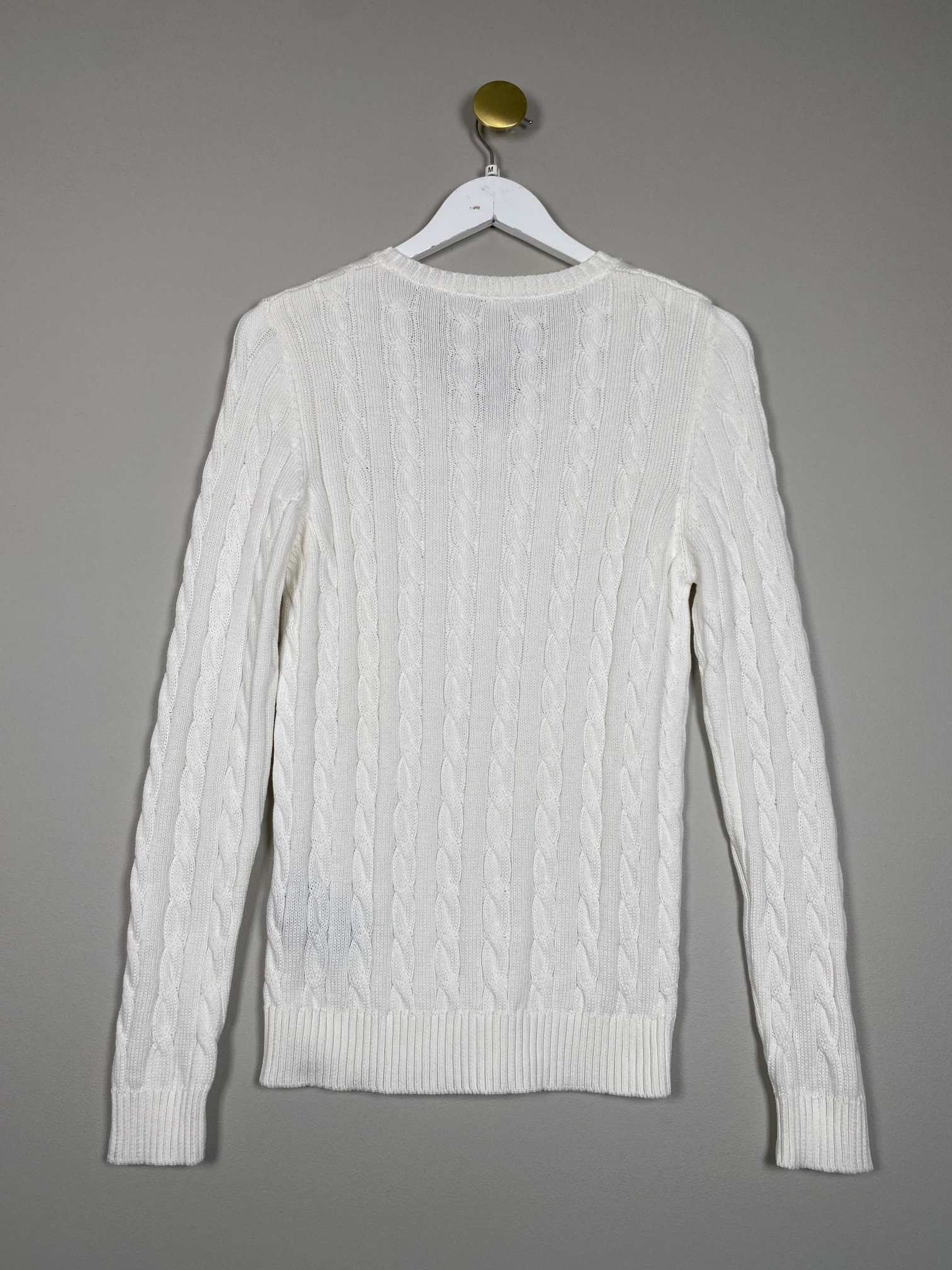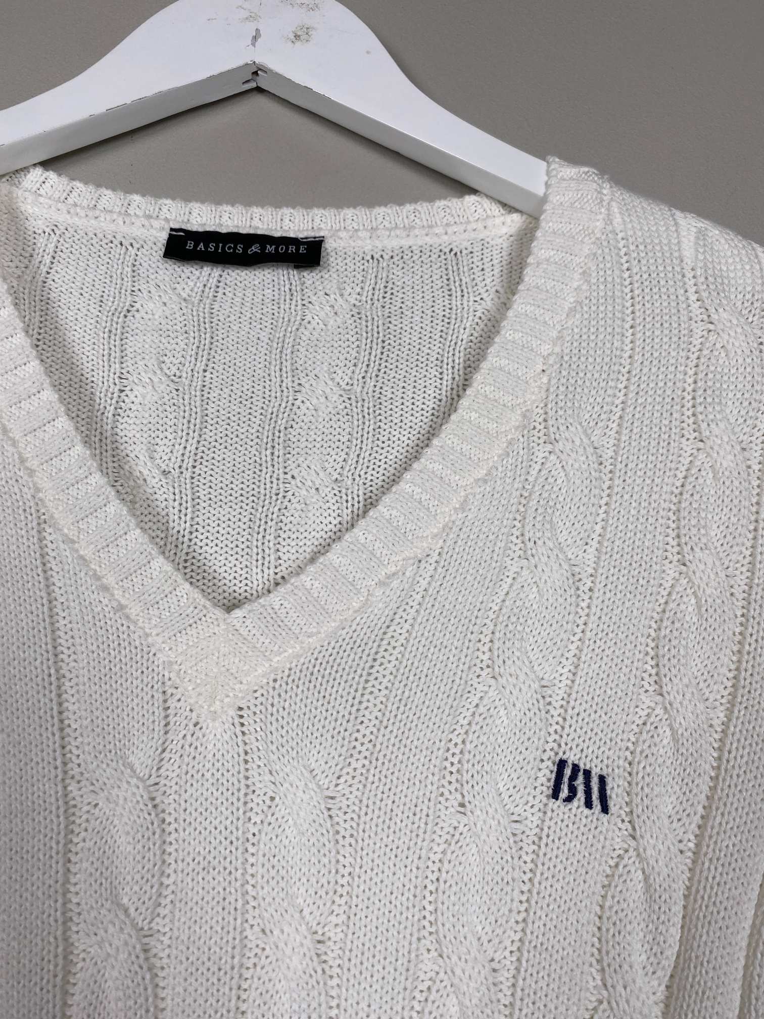Offwhite strik i kabelmønster med V hals