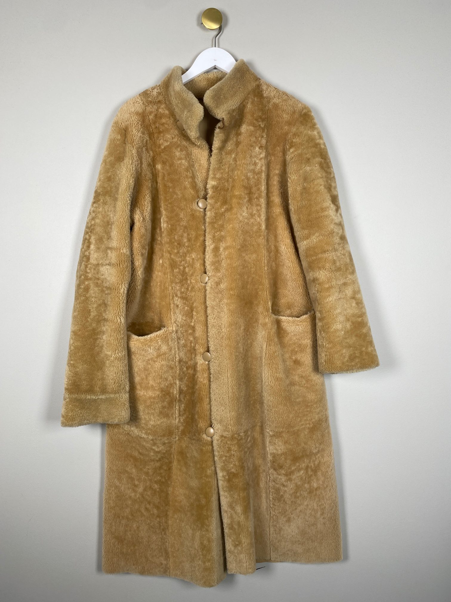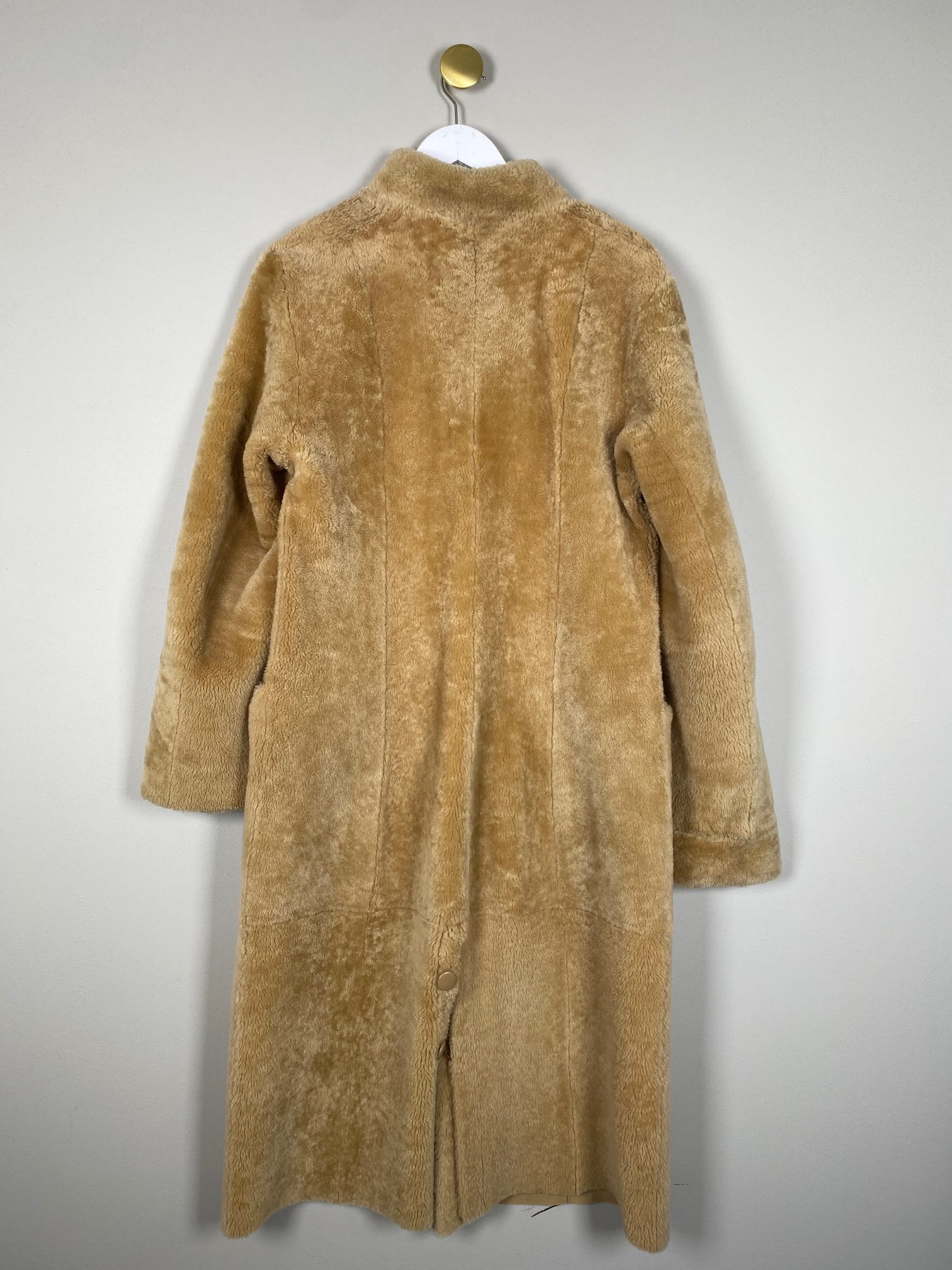 vendbar beige lammeskind frakke