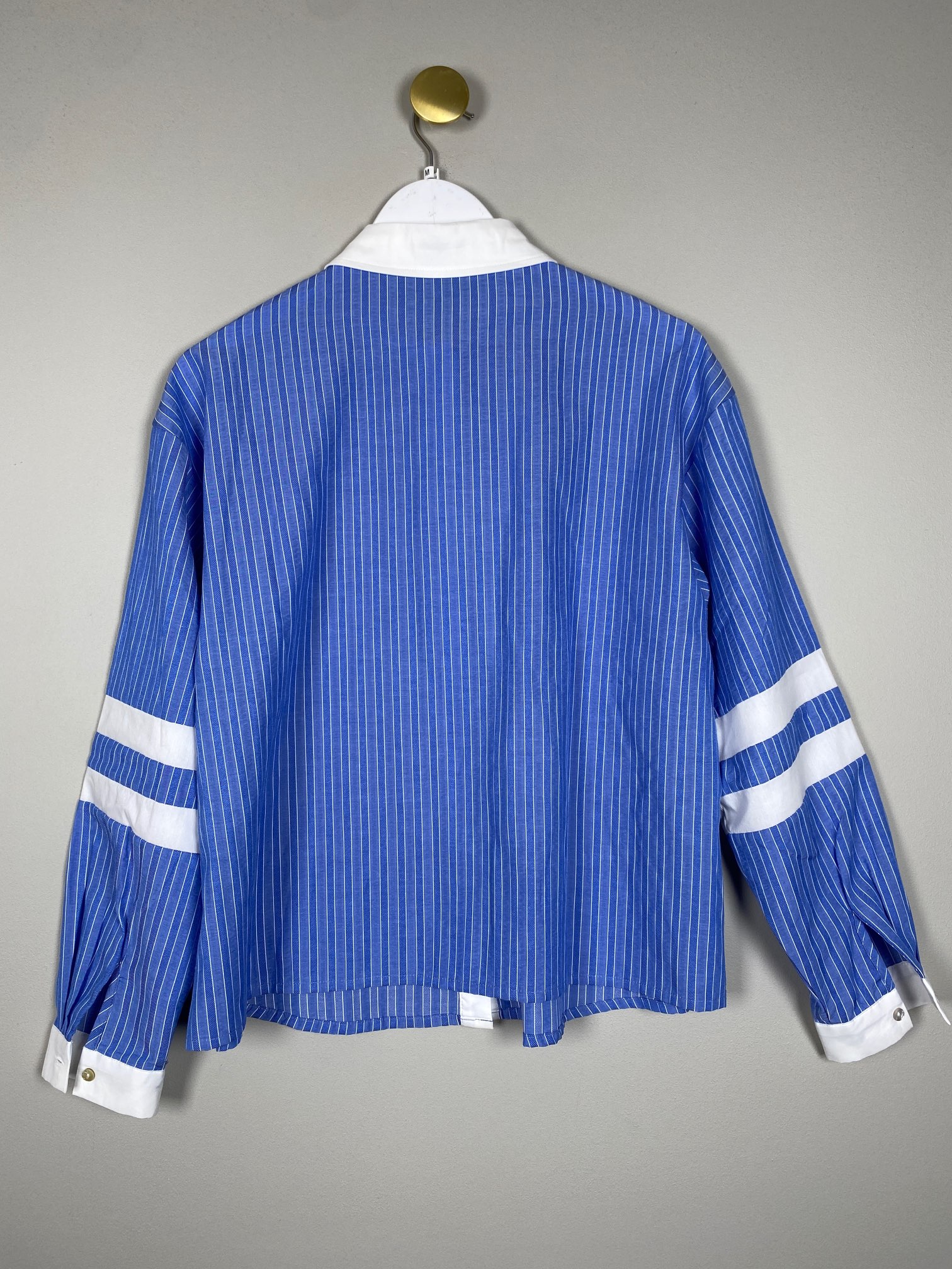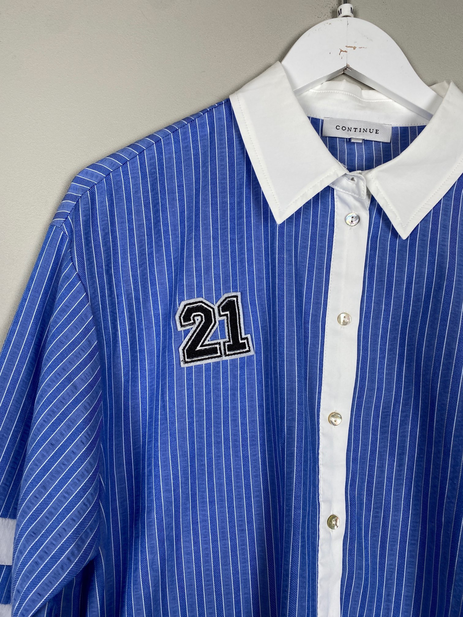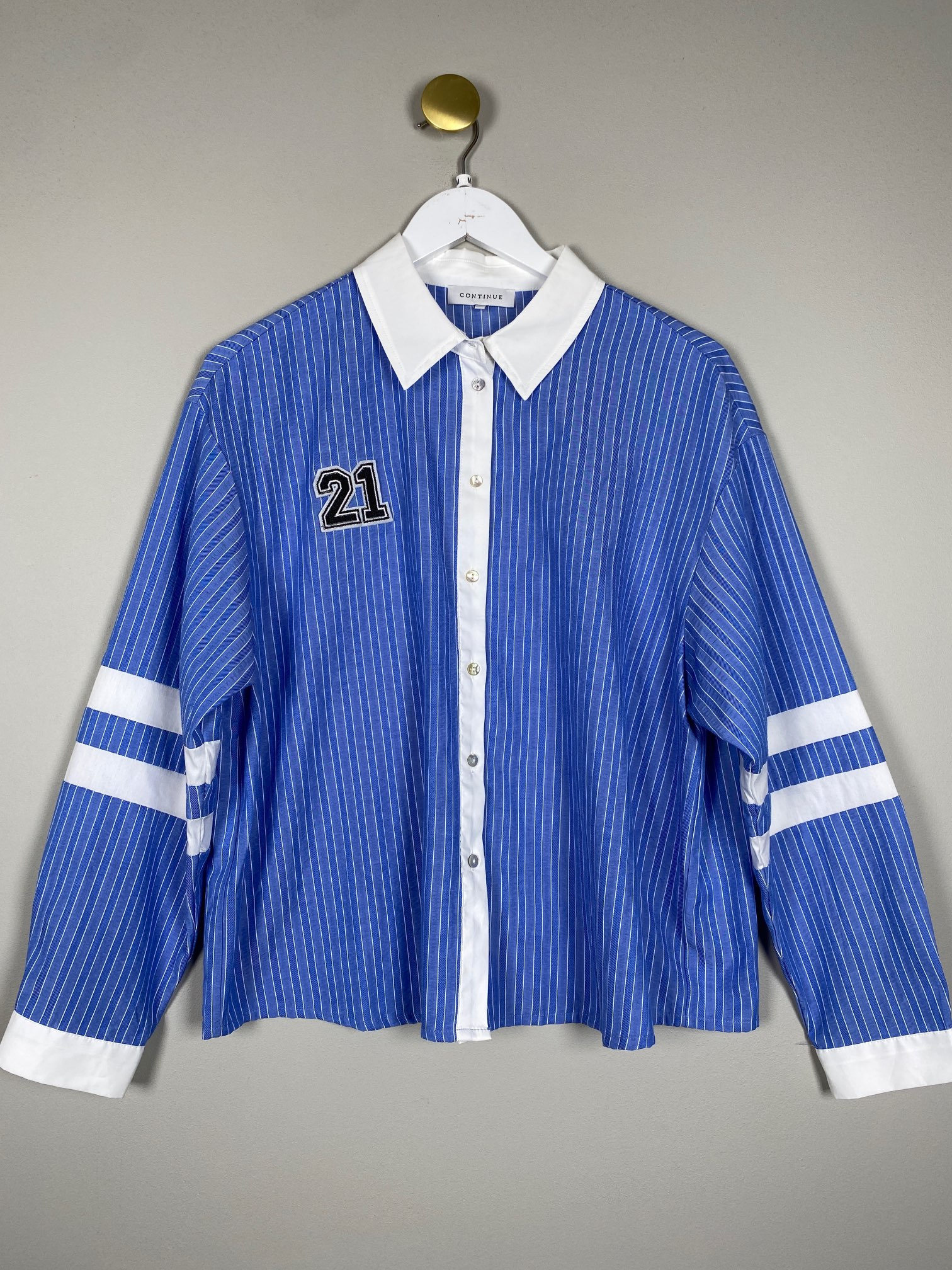 lyseblå løs skjorte med sportsdetaljer