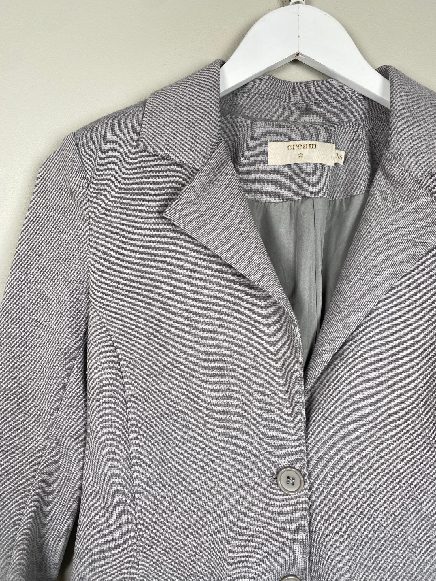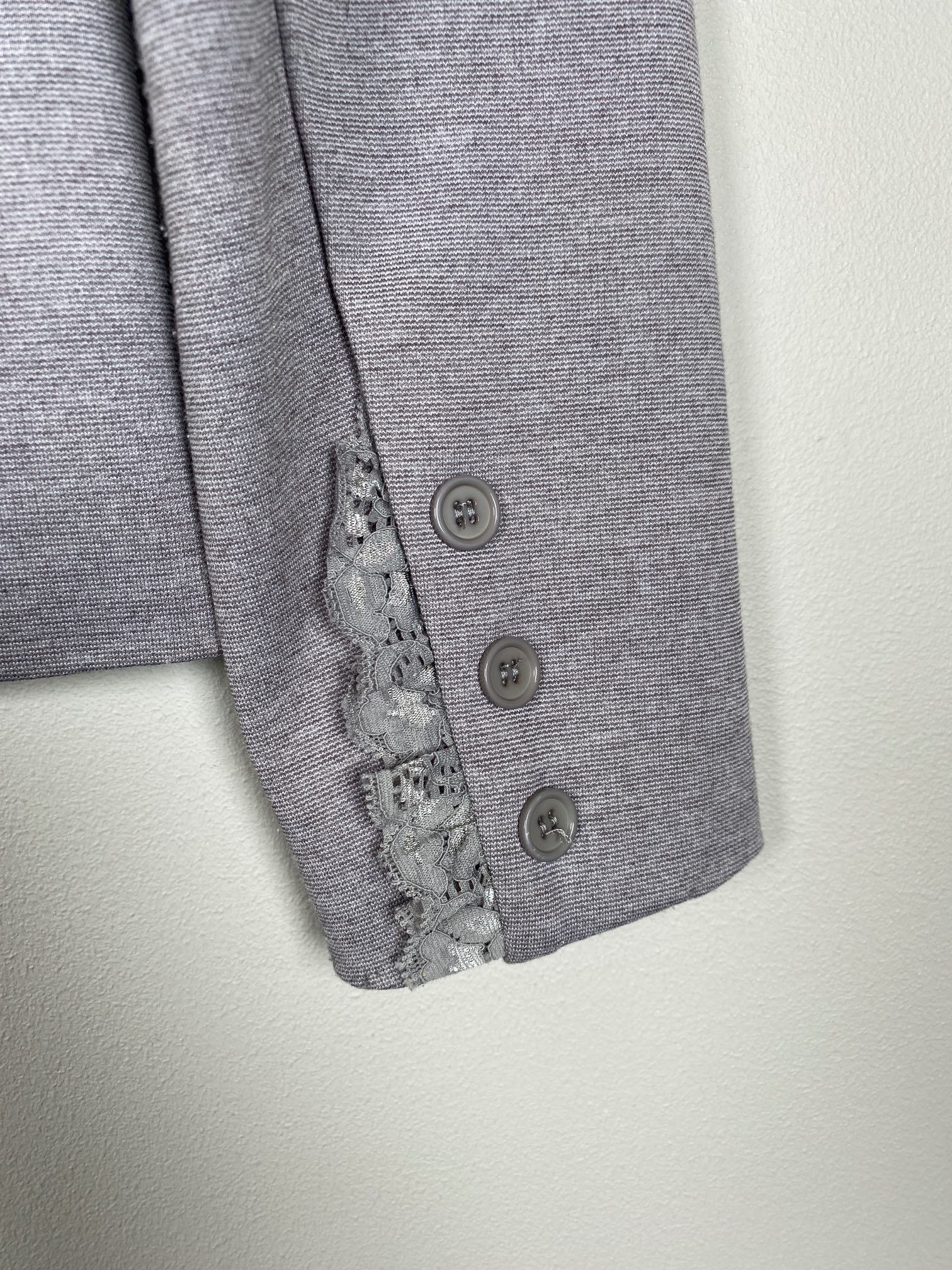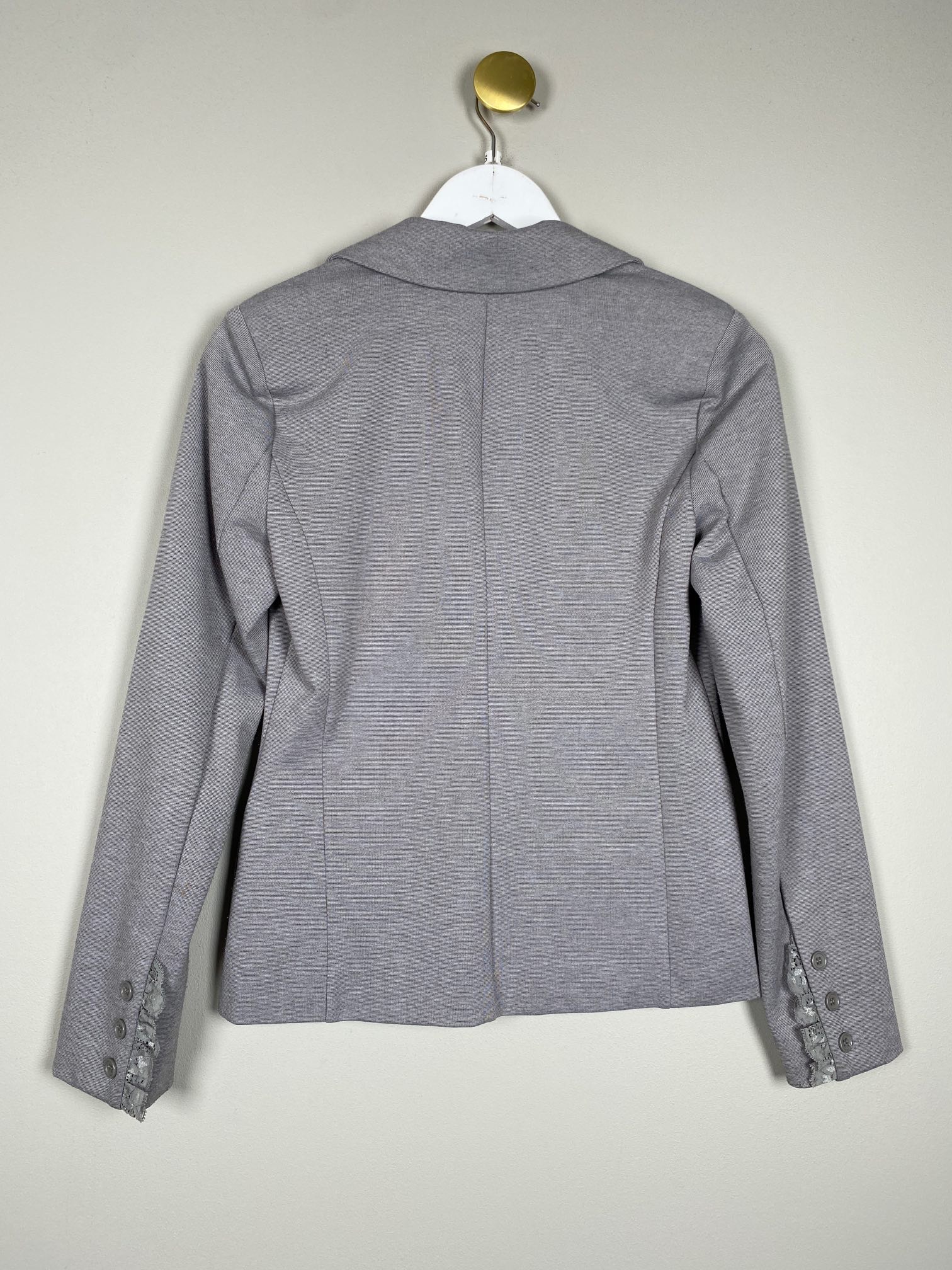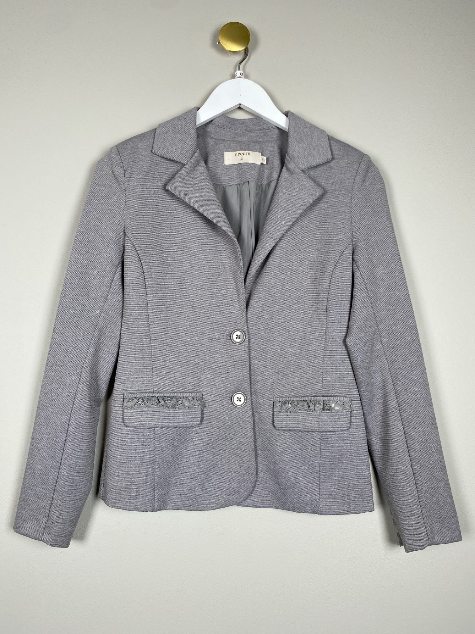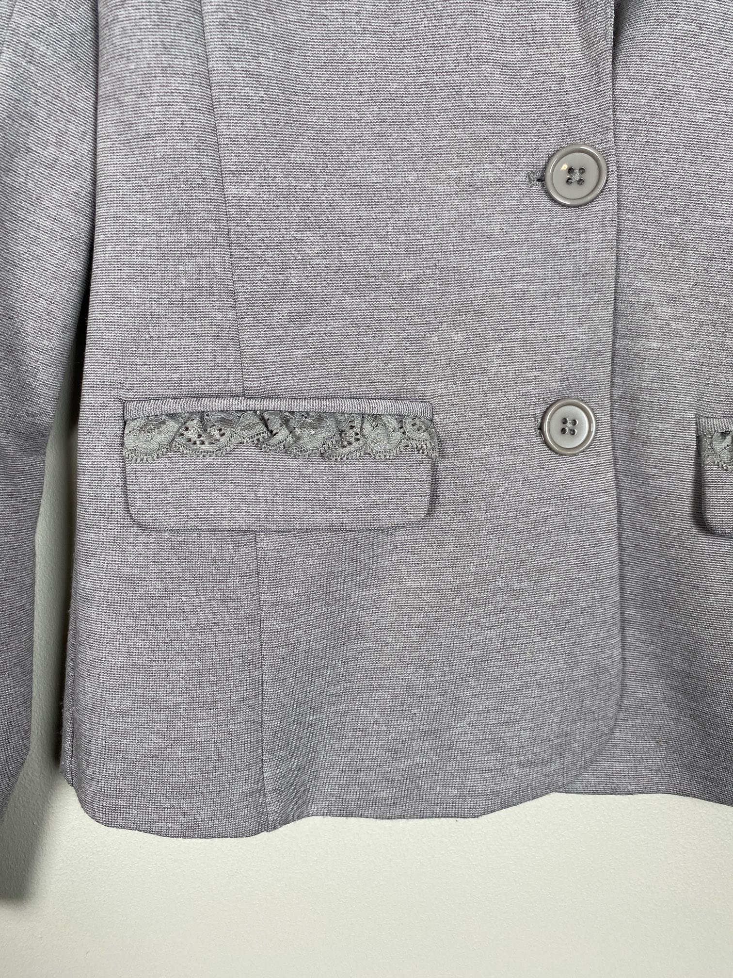 grå blazer i stræk jersey med blonde ved lommer