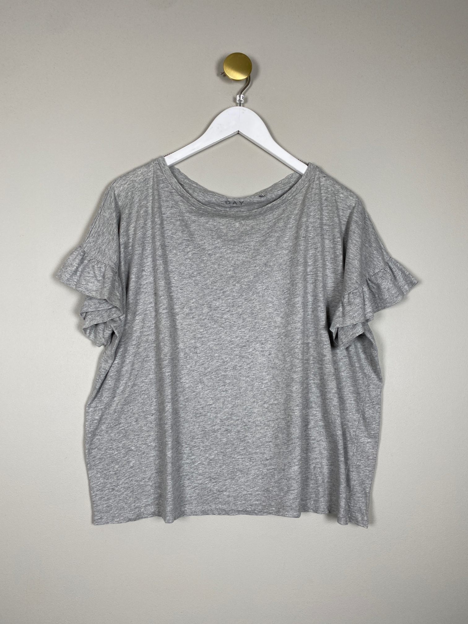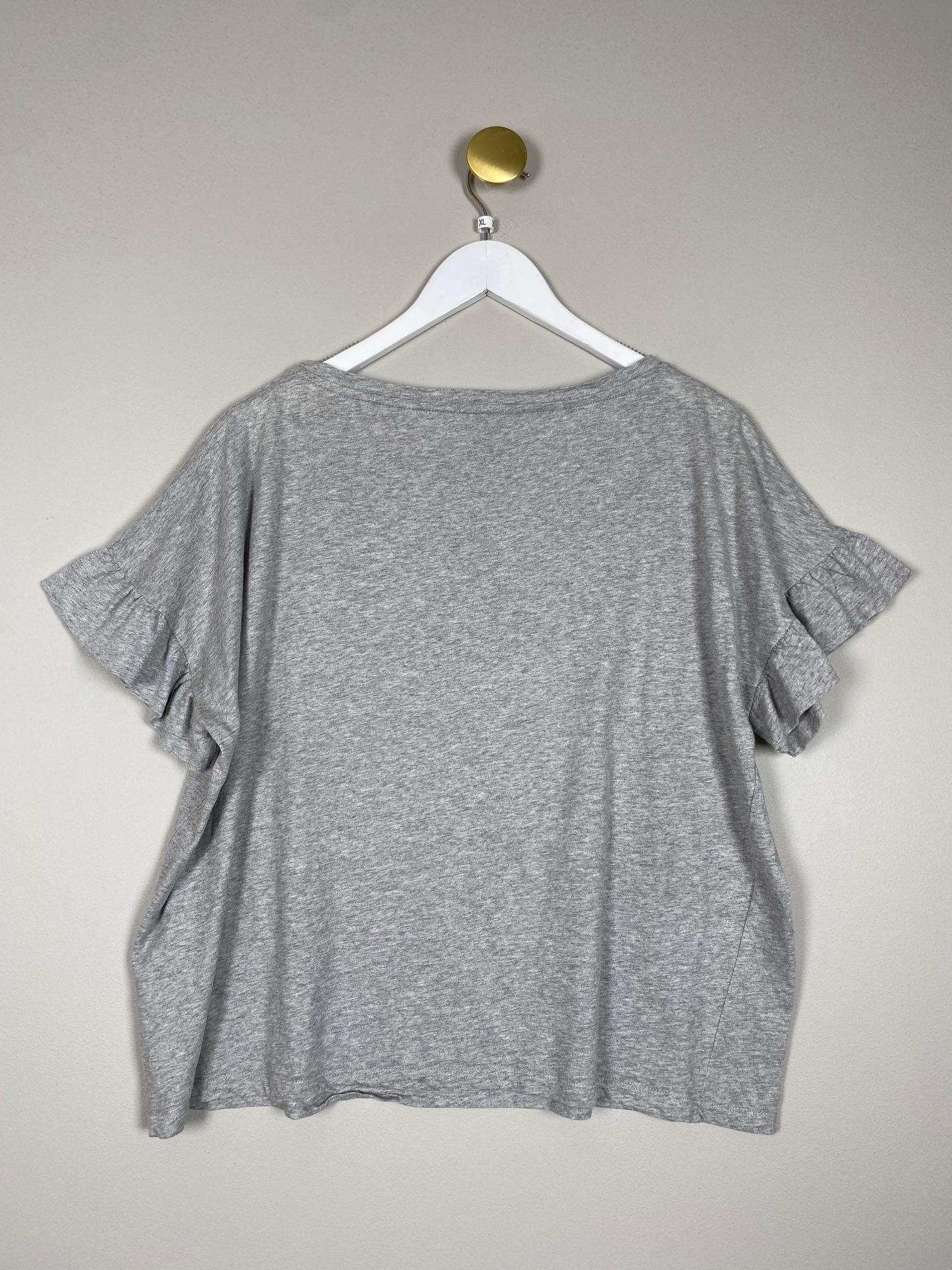grå t-shirt med flæser på ærmer
