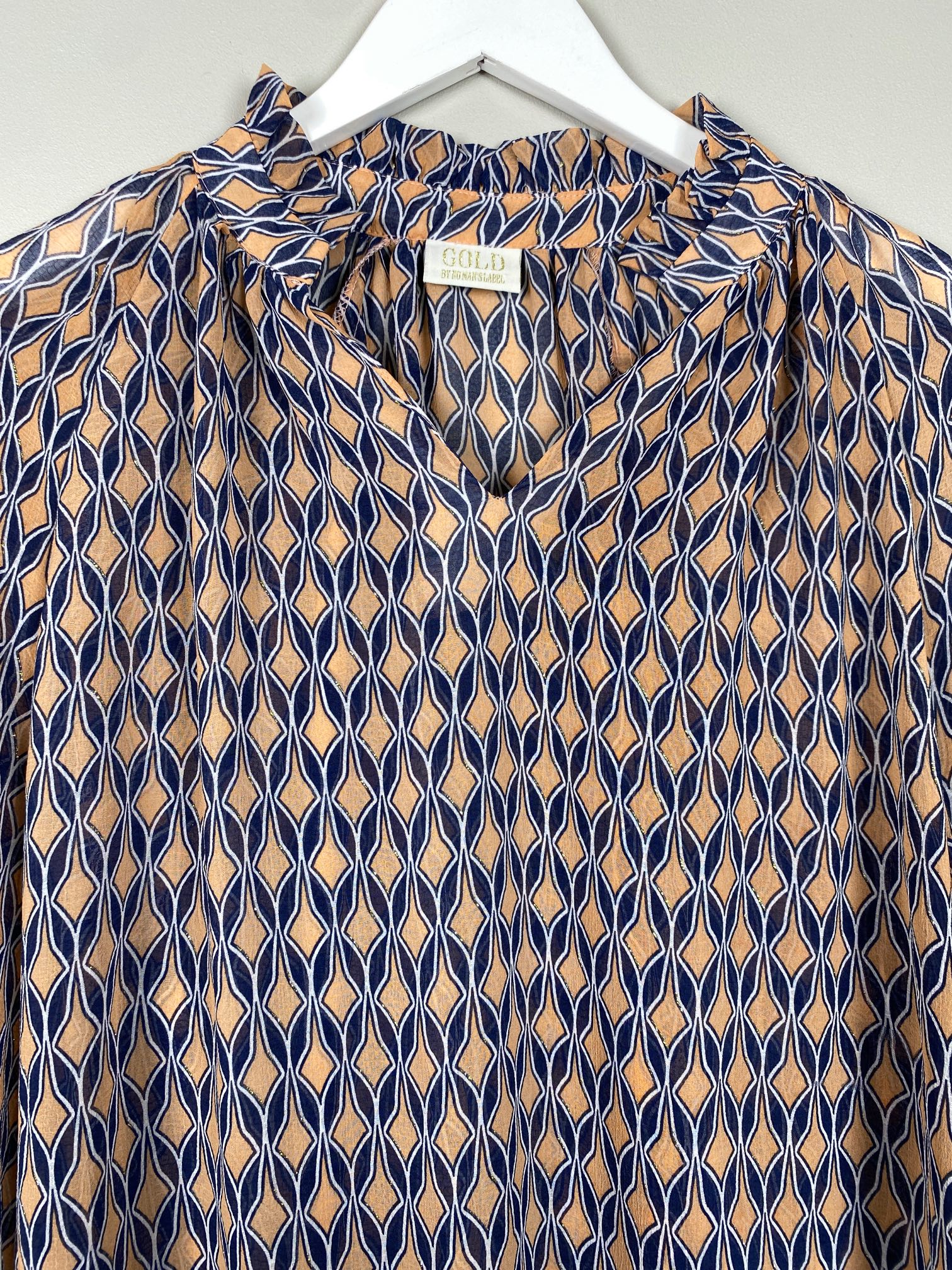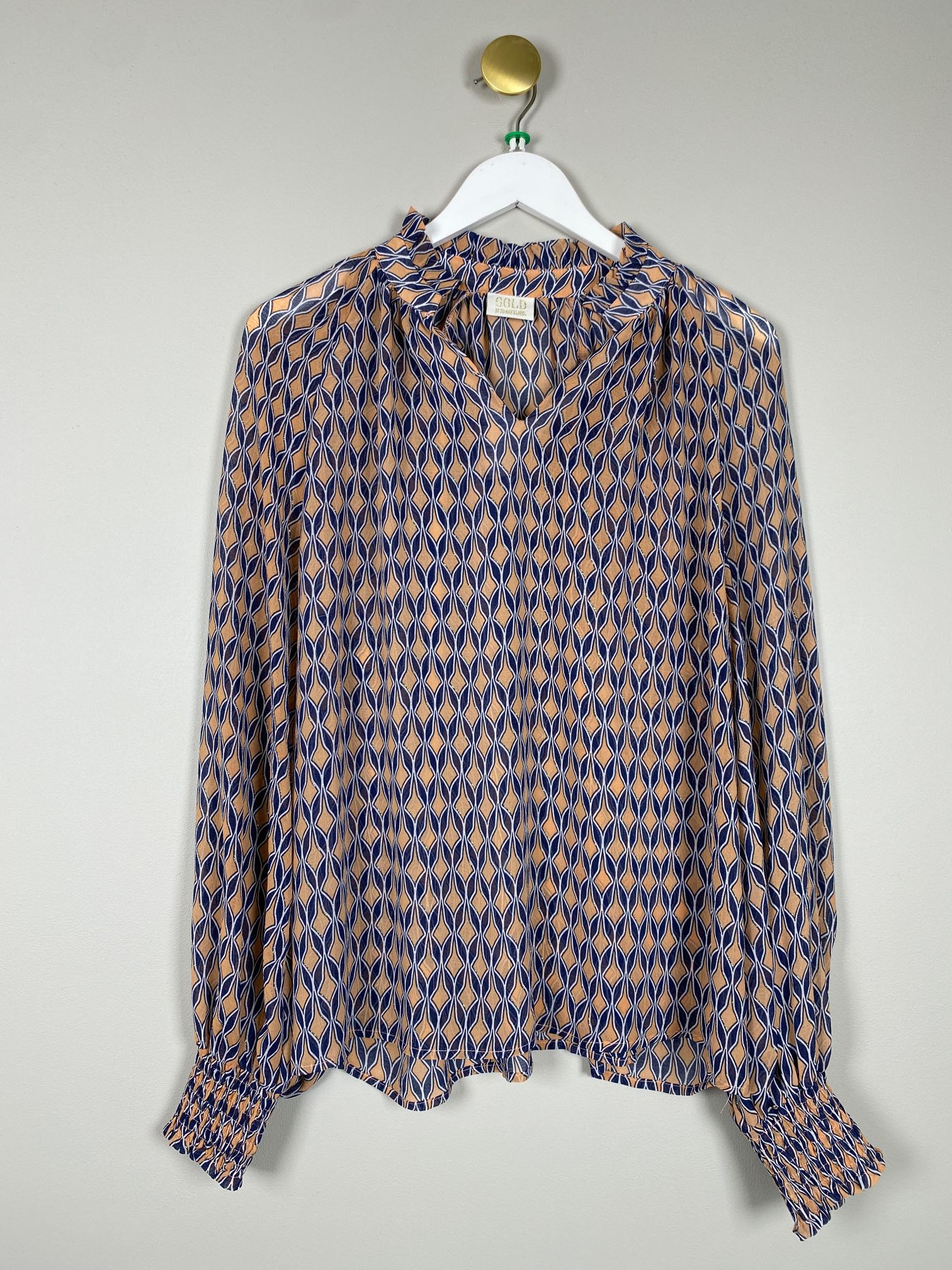 mønstret blå bluse