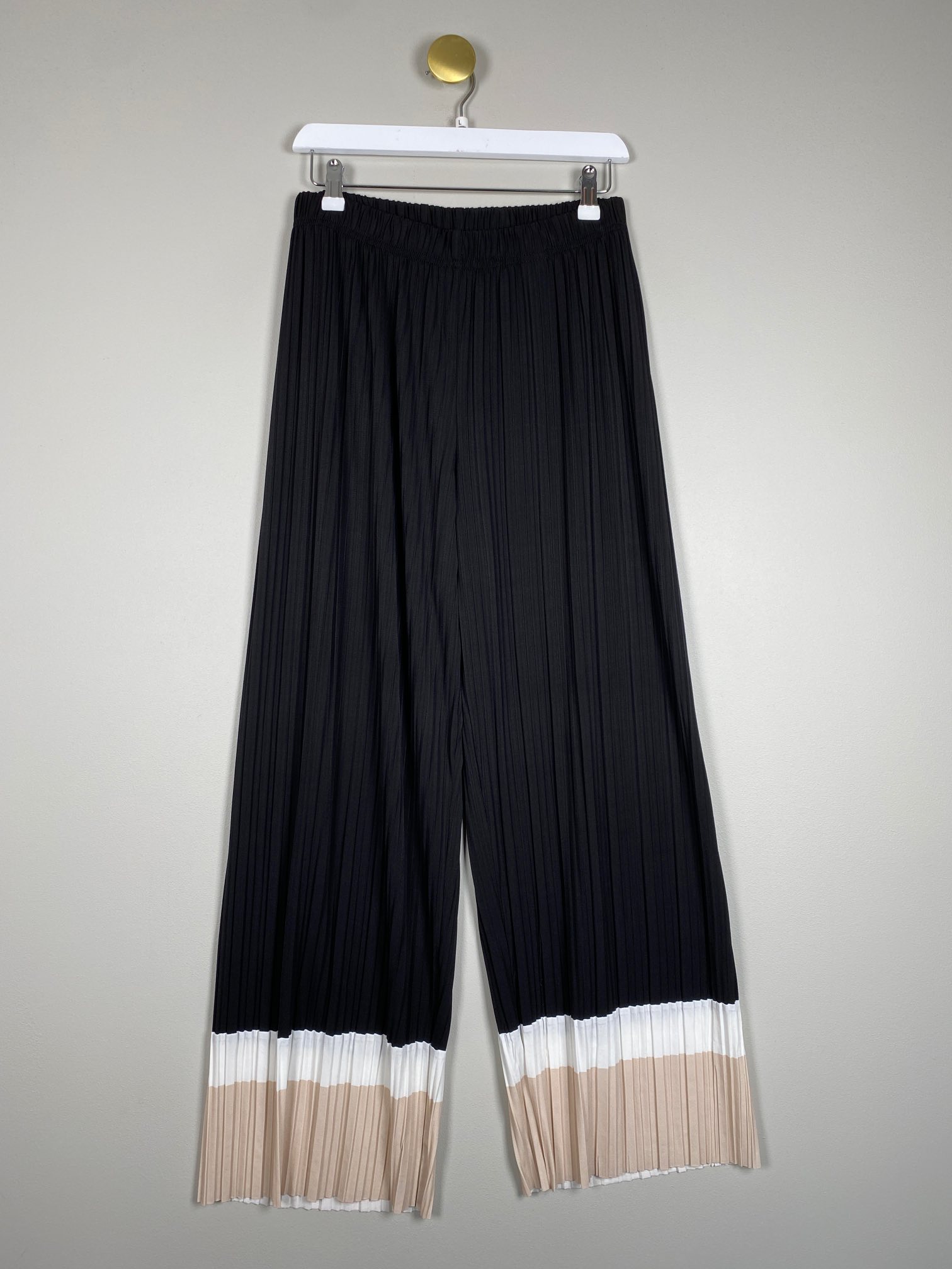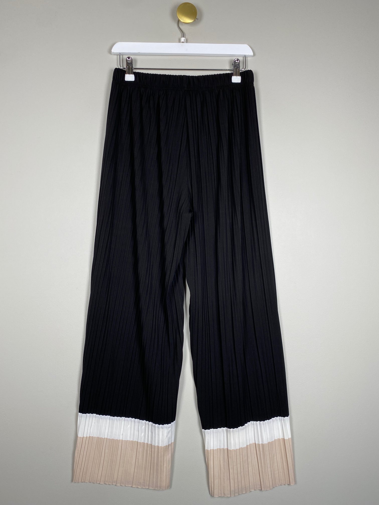 plisse buks slacs sort med beige offwhite ben