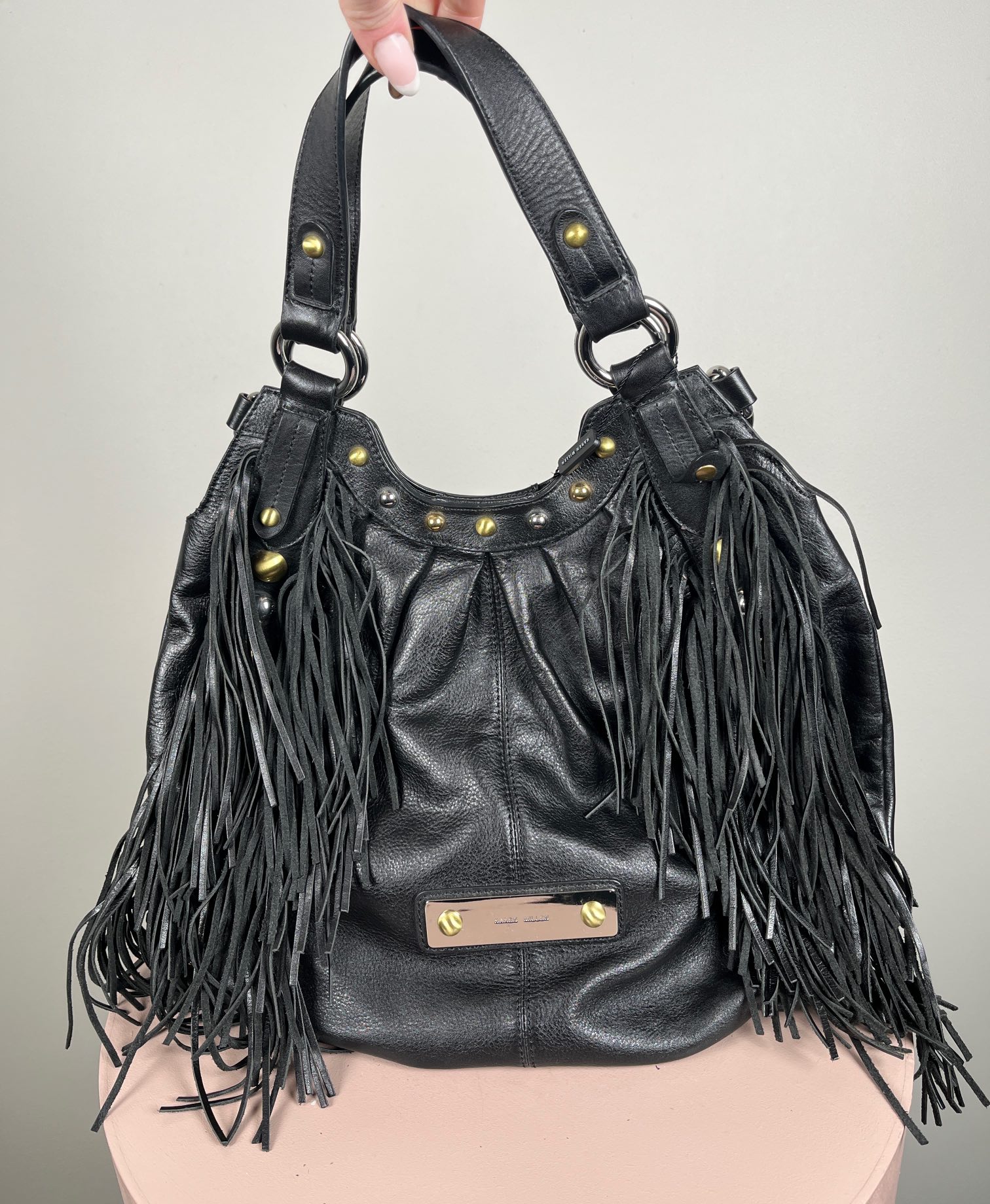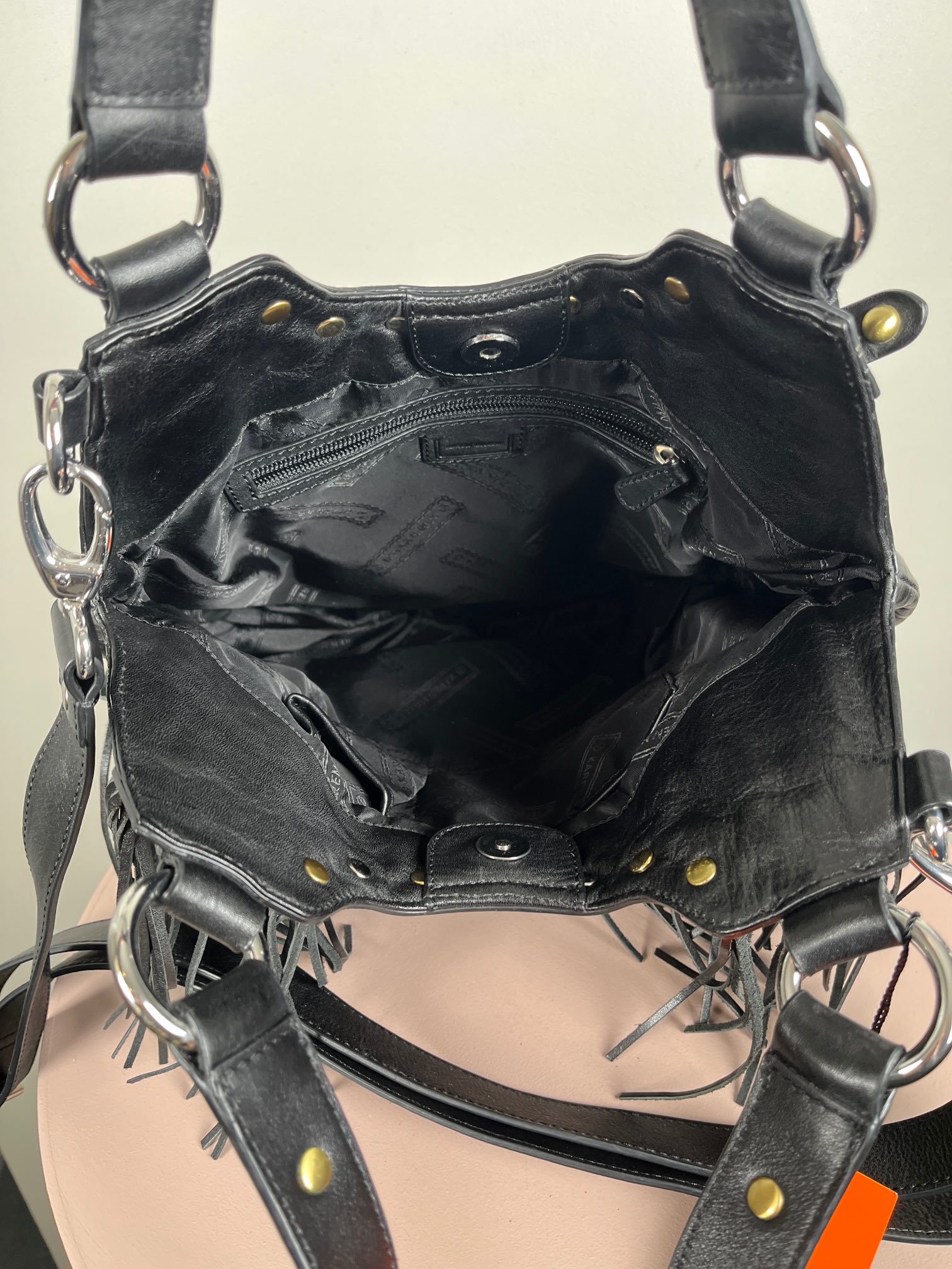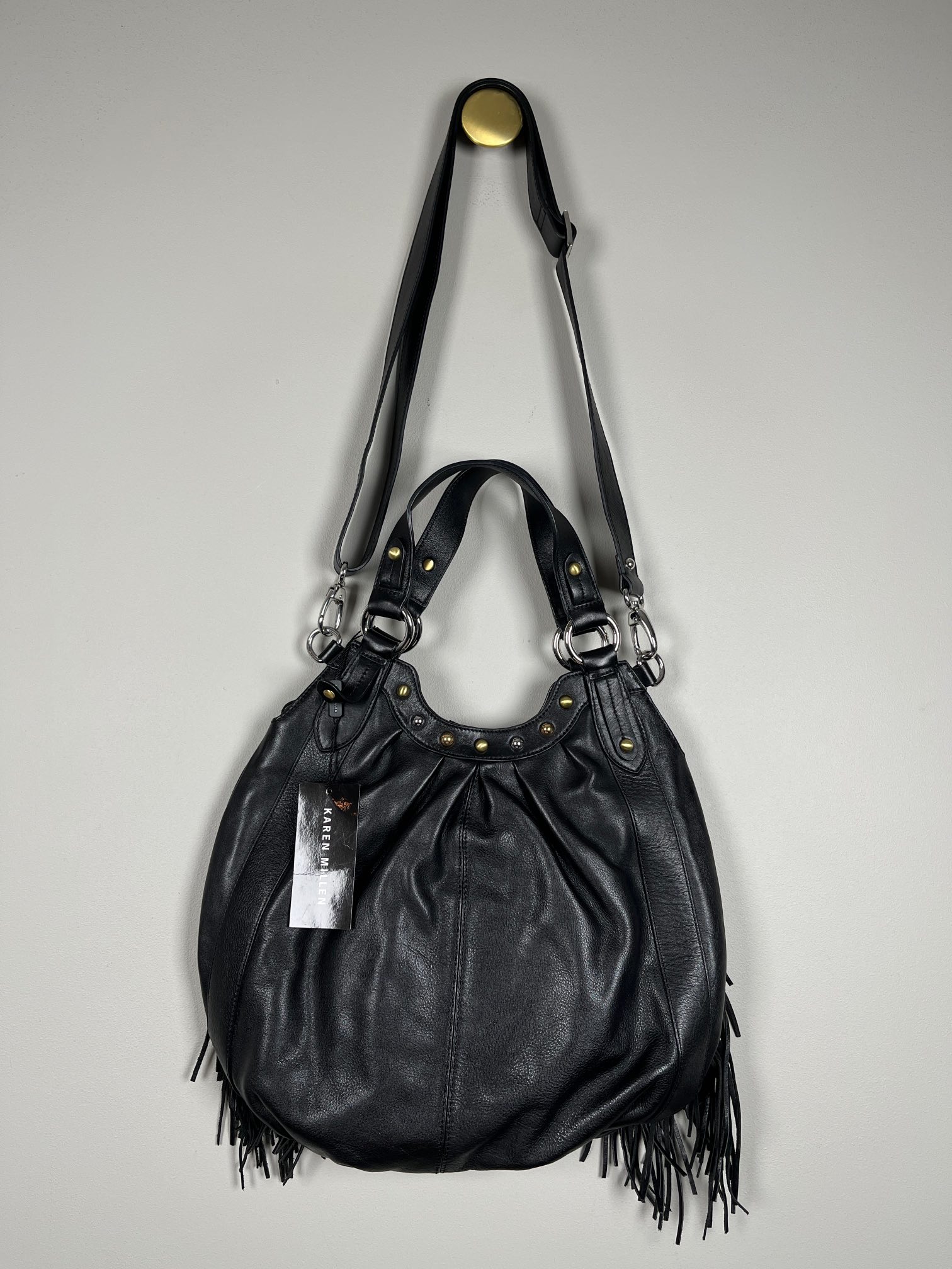 Karen Millen skuldertaske med frynser og nitter