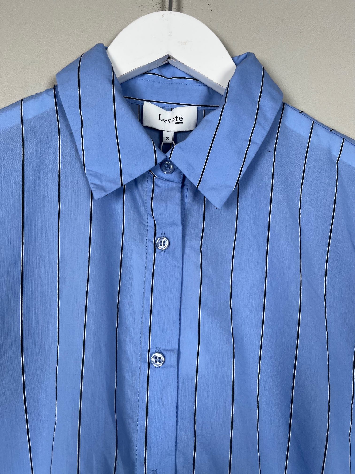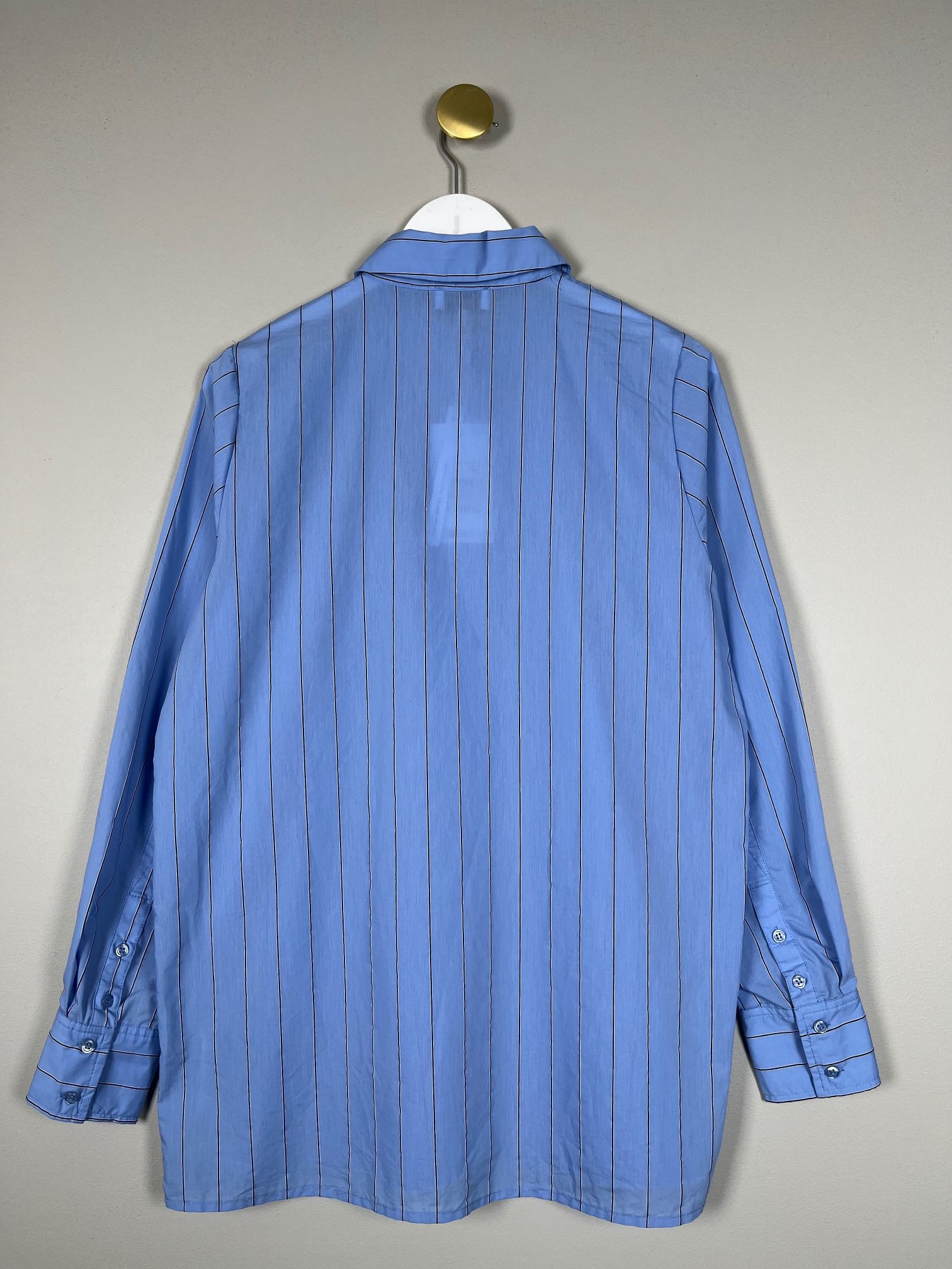 lang lyseblå skjorte med nålestribe