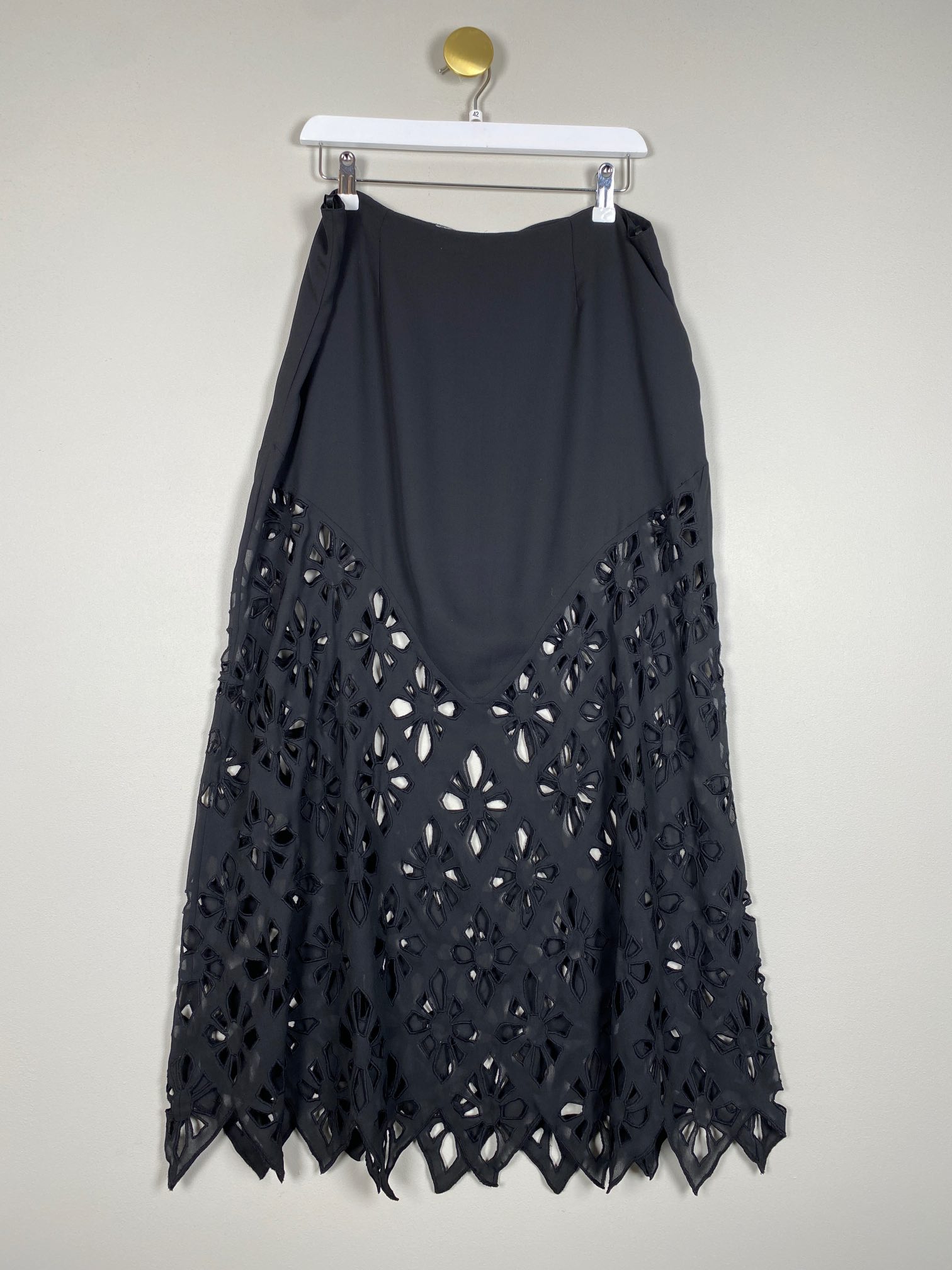 sort nederdel med hulmønster