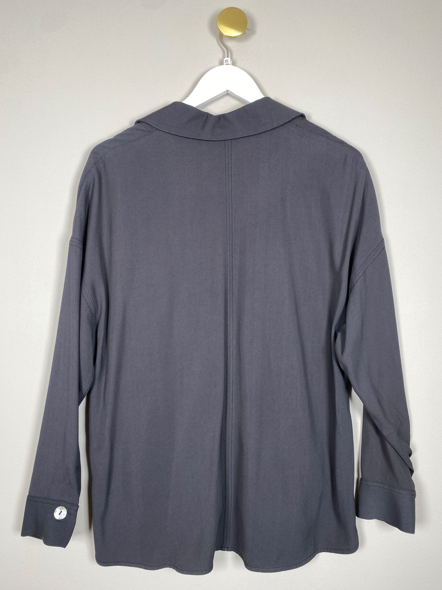 grå bluse med v-udskæring