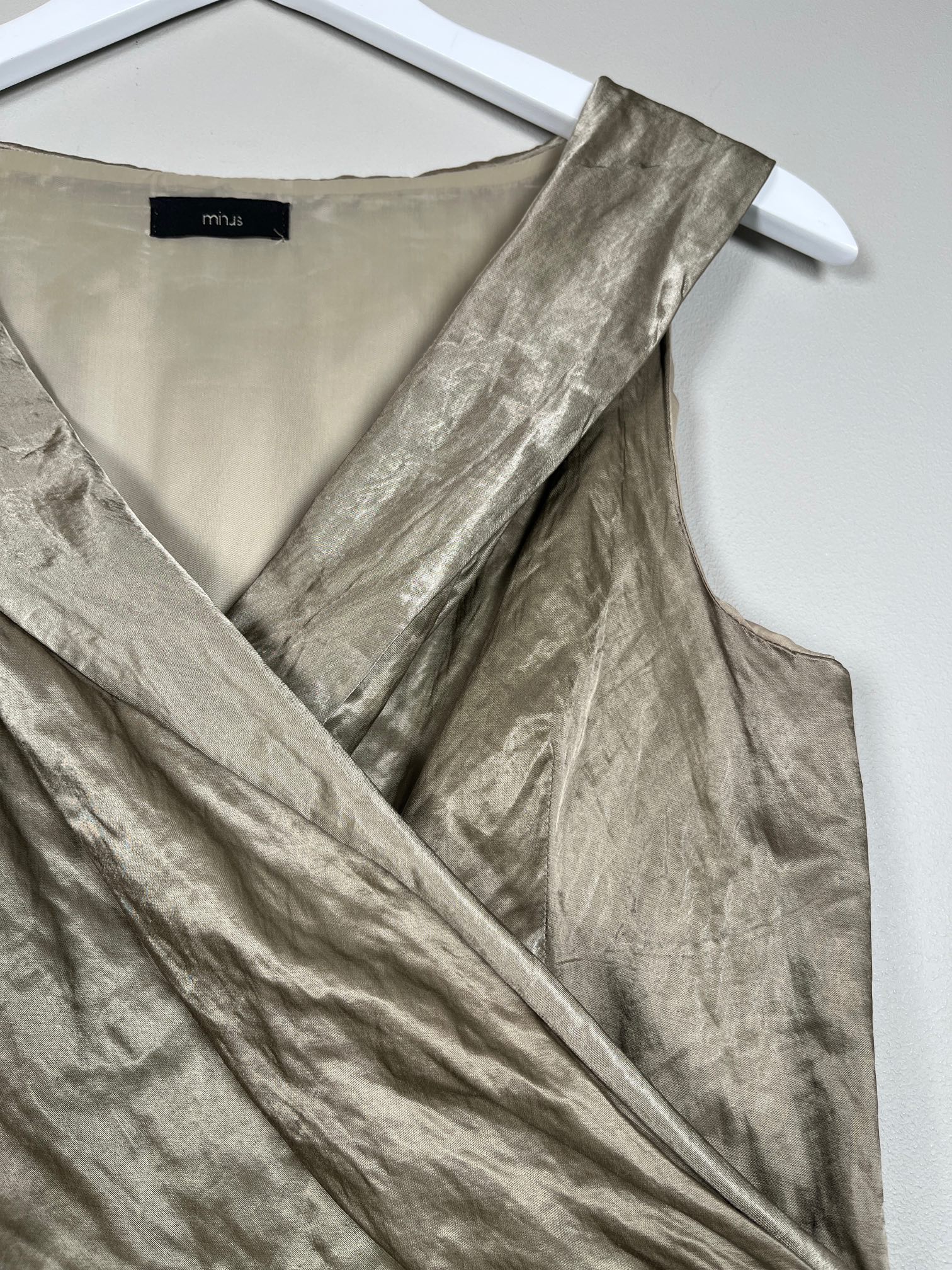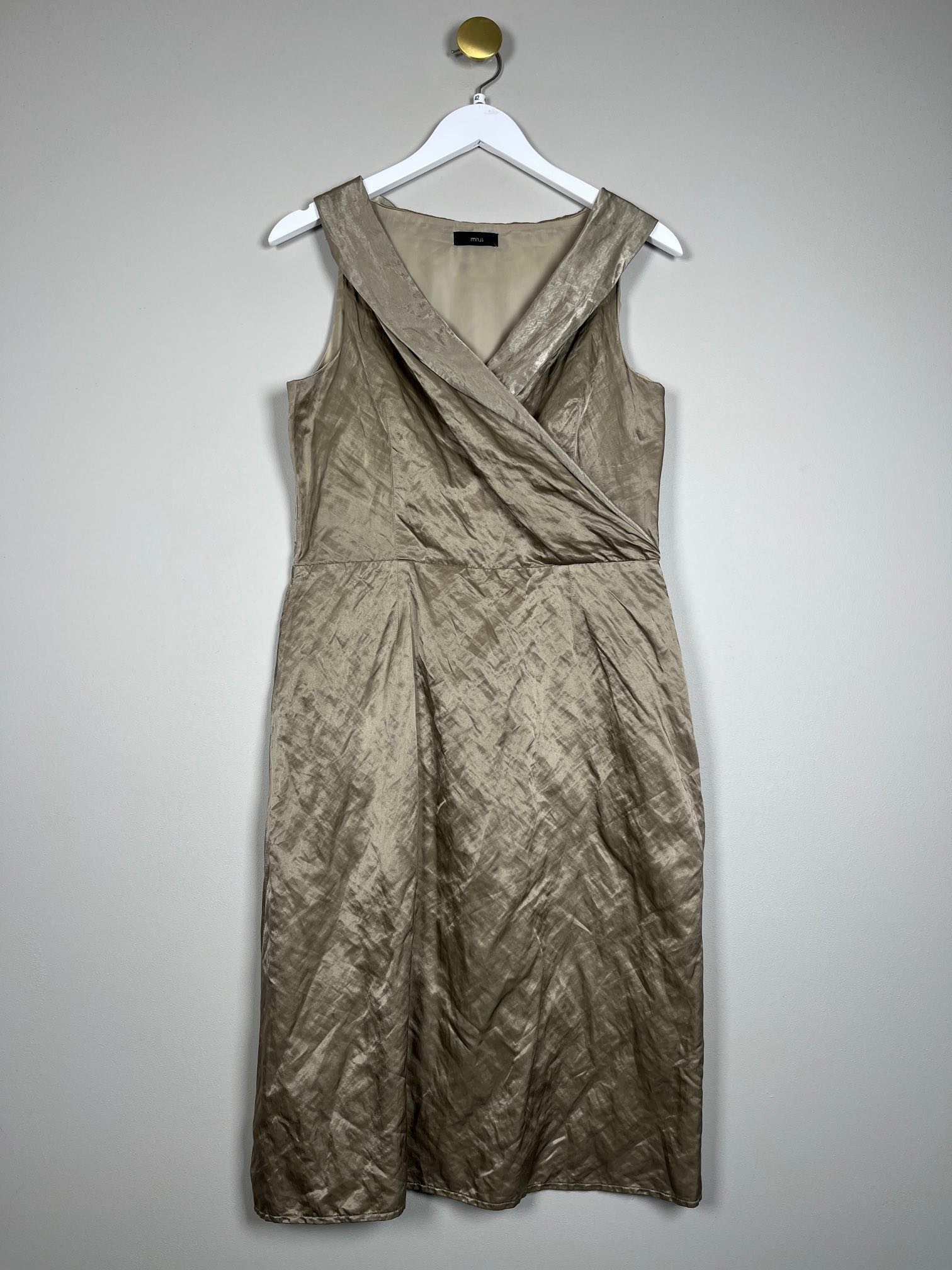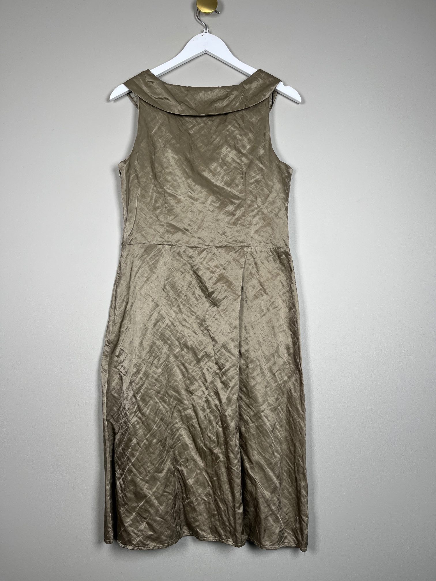 guld taft kjole uden ærme med krøleffekt i stof