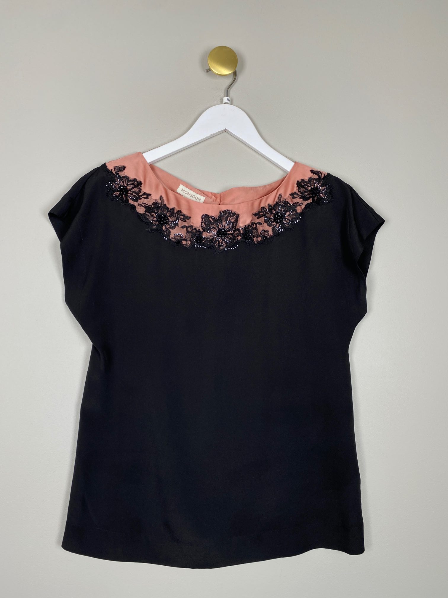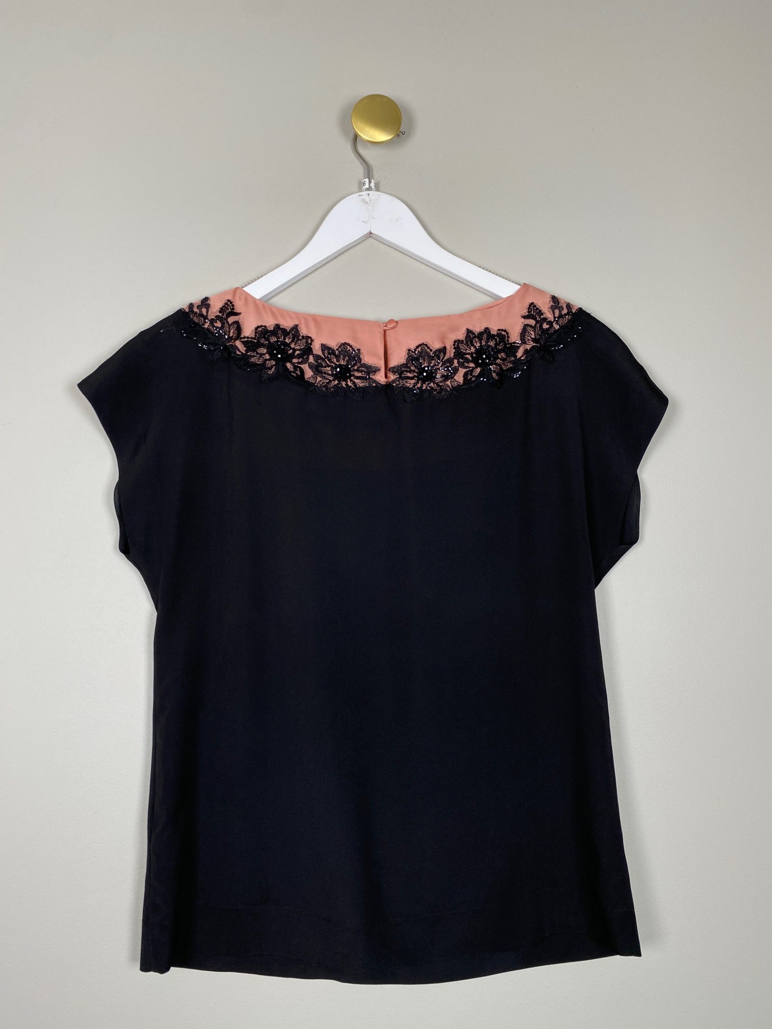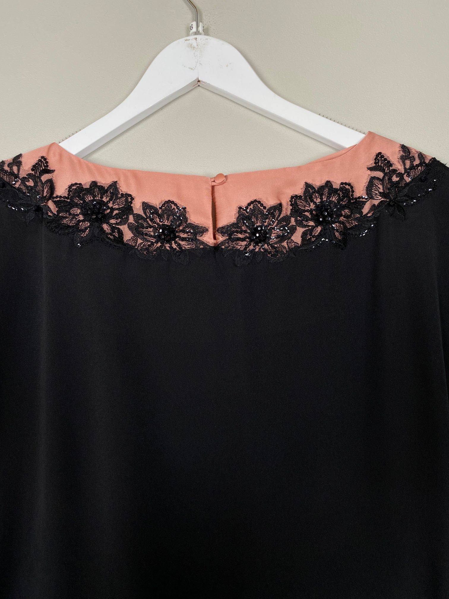 sort top med blonder og sten ved krave