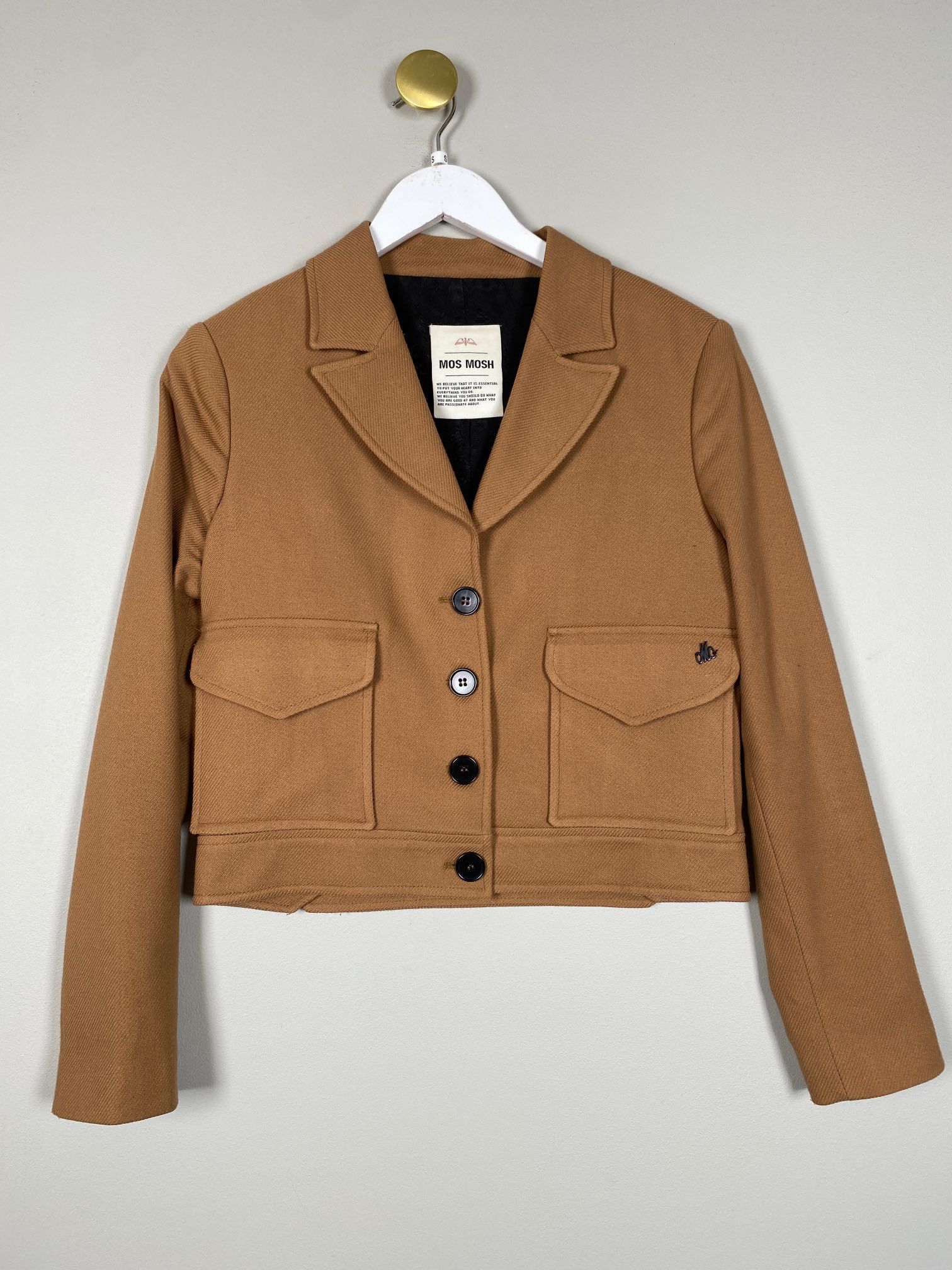 beige lys brun kort blazer med store lommer