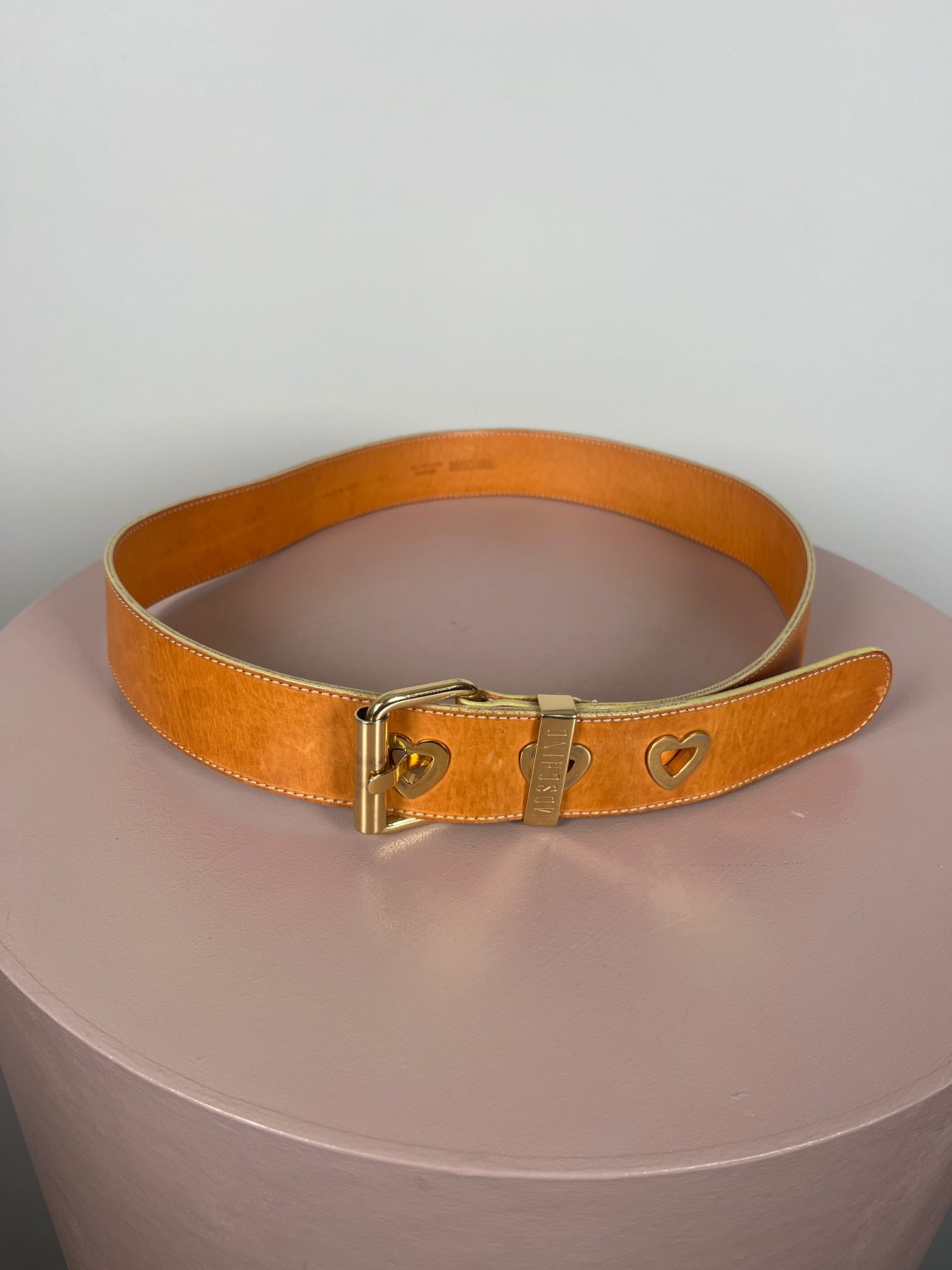 Moschino brunt læderbælte 85 cm