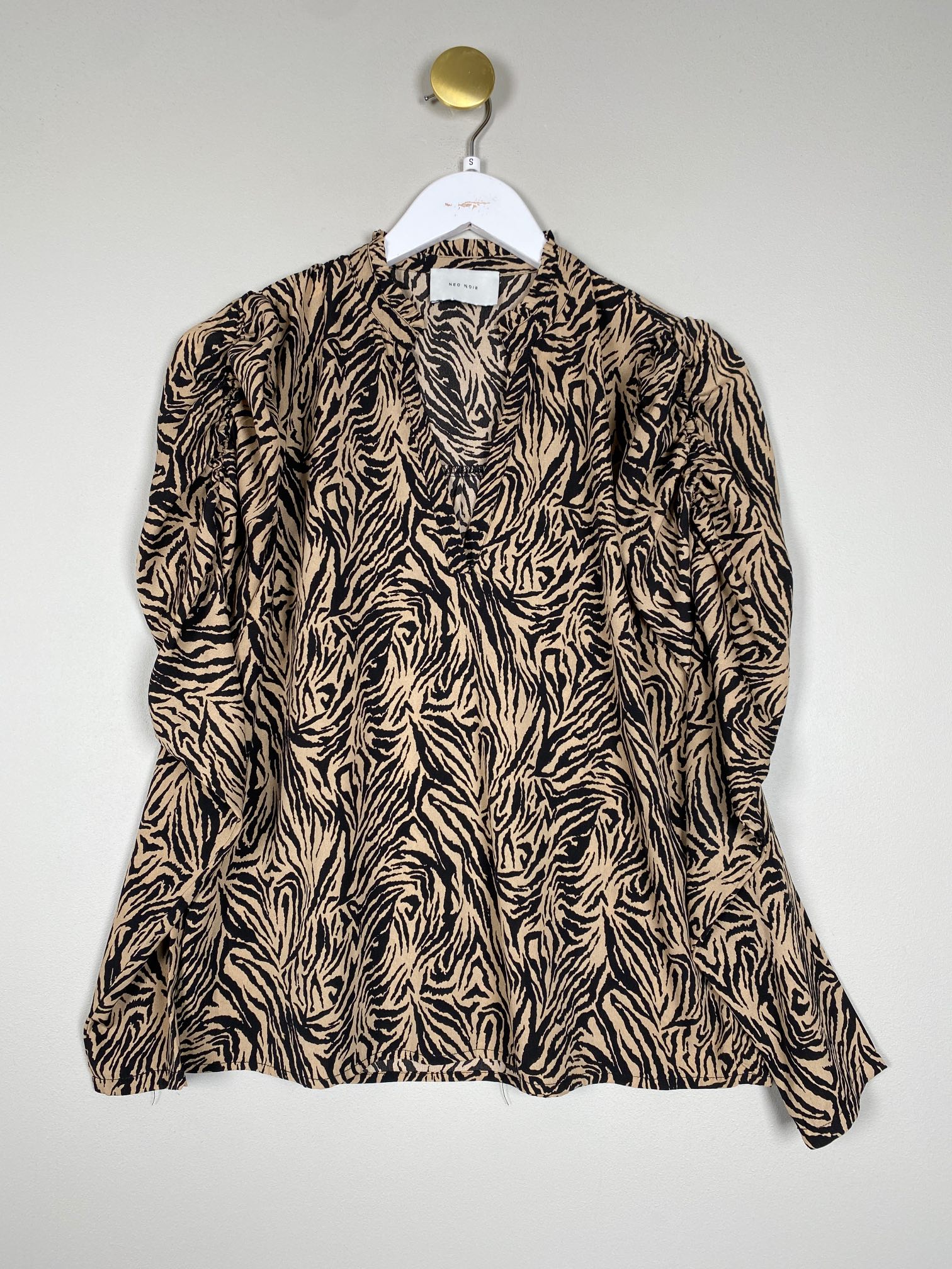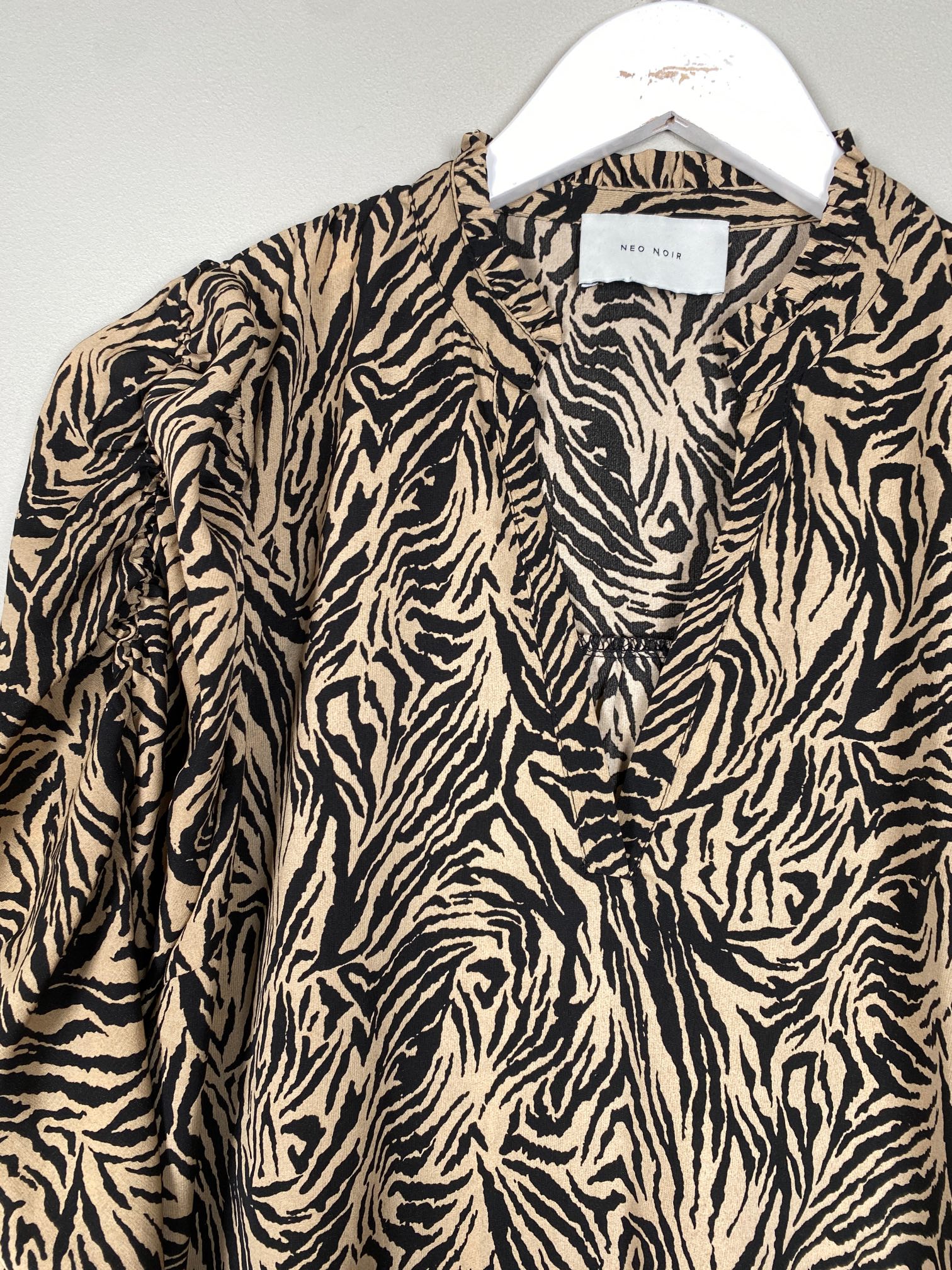 sort beige bluse med pufærme