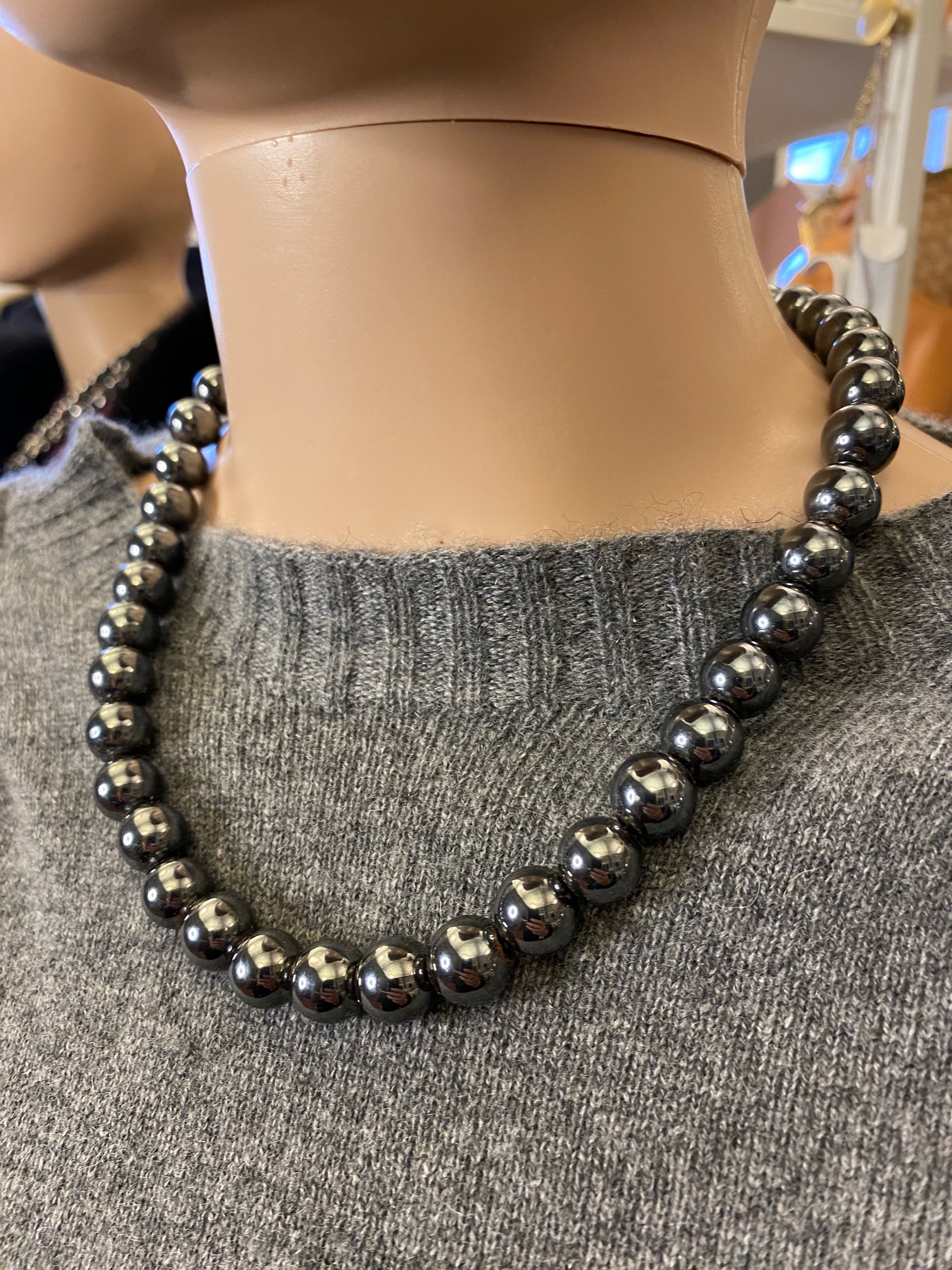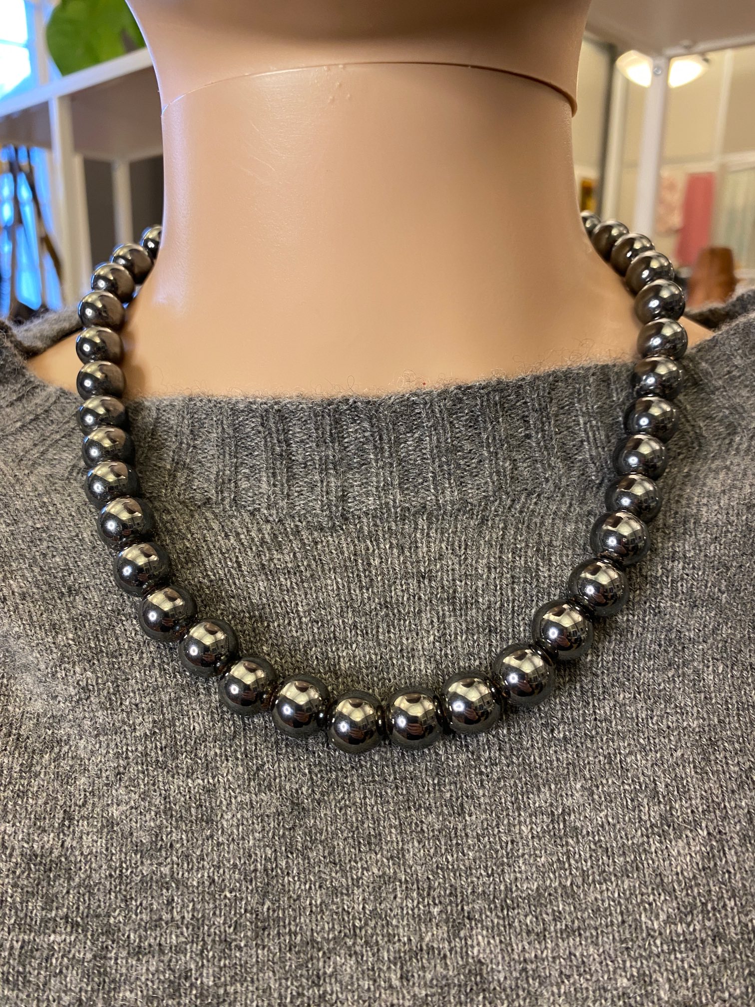 Perlekæde i sort antracit blank perle
