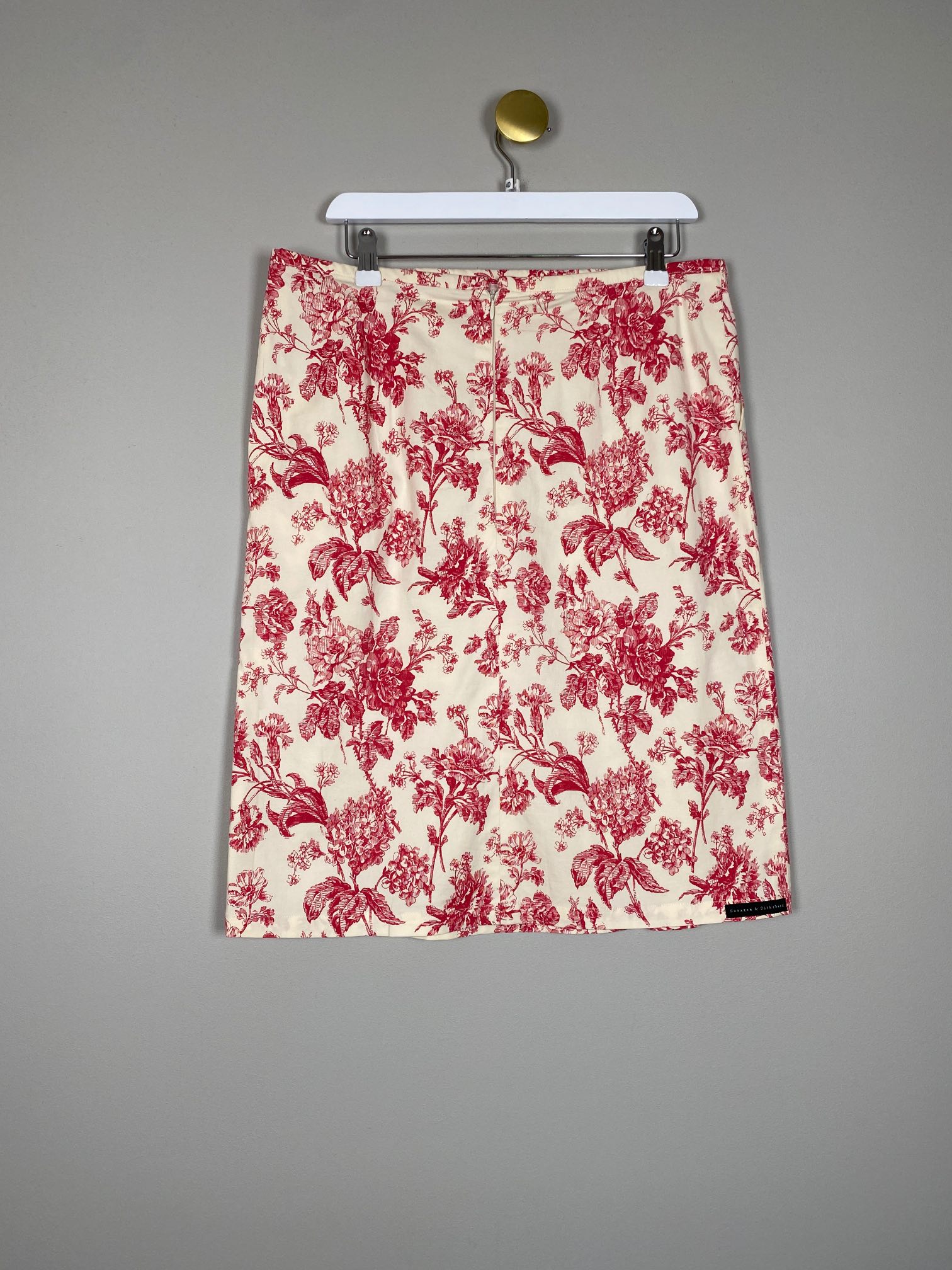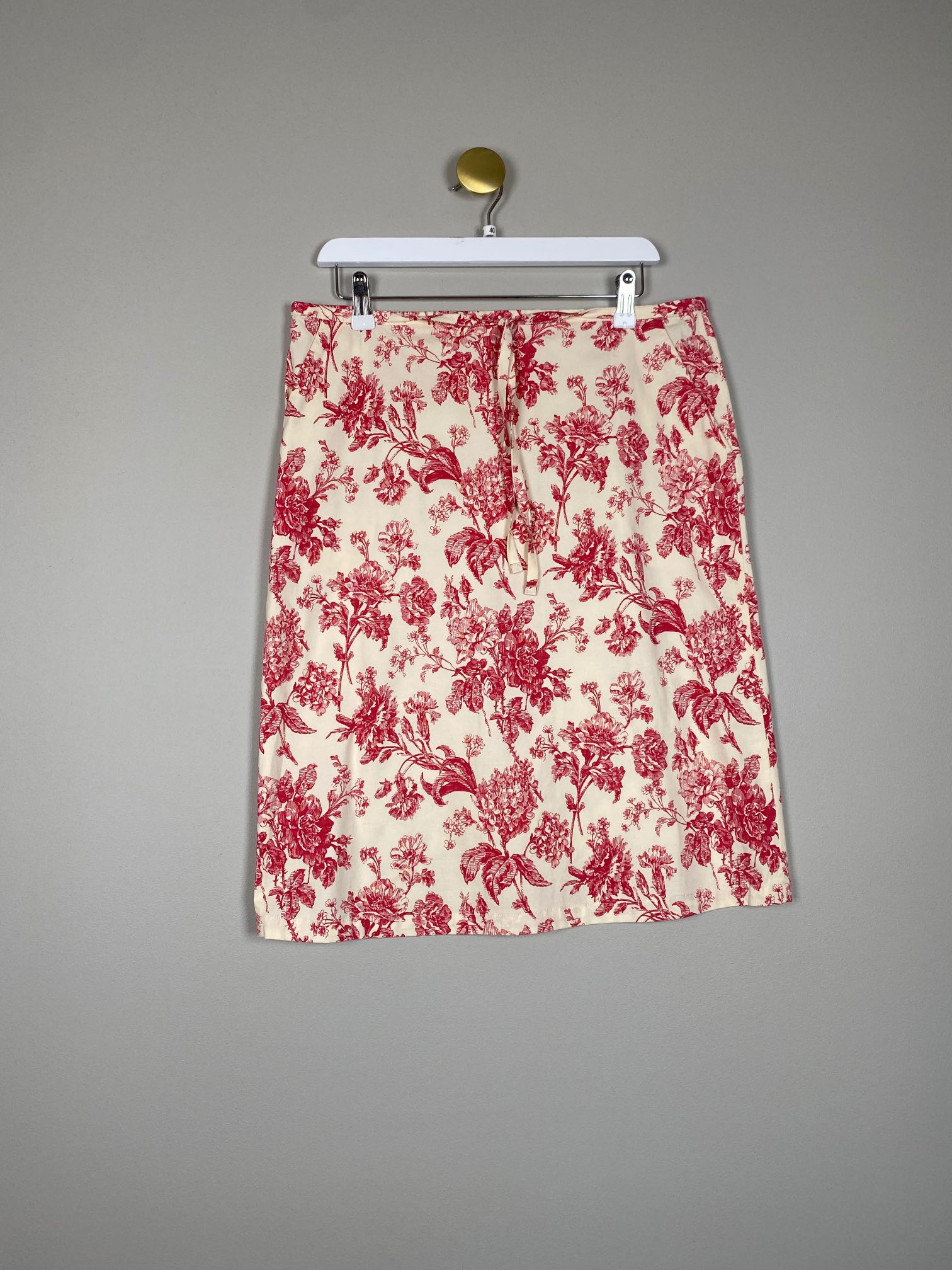 råhvid nederdel med pink blomster