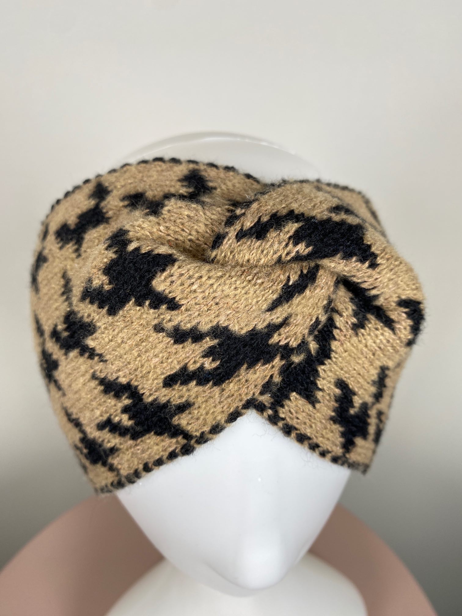 Strikket pandebånd, brun og sort